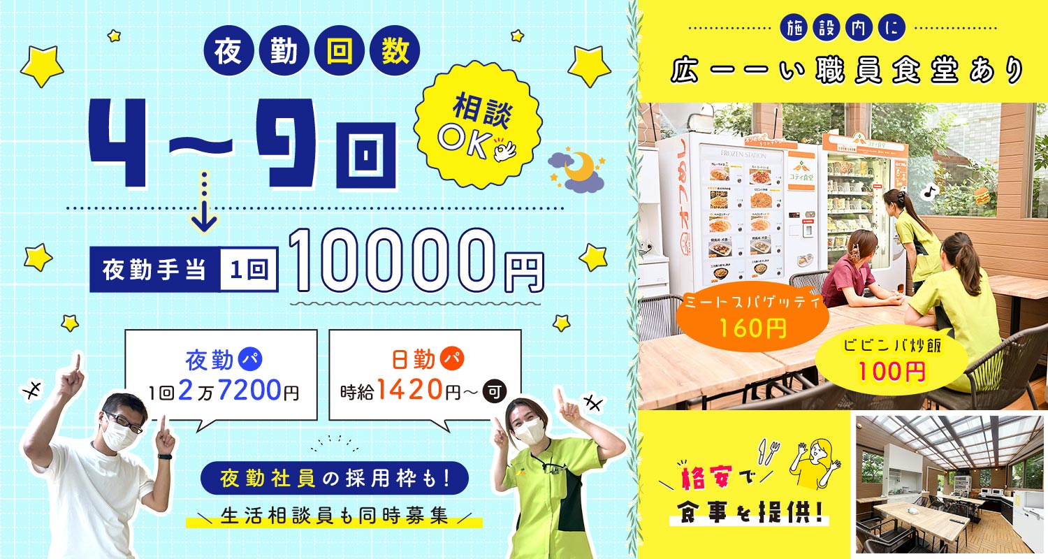 | 仕事内容 | 夜勤専従の介護職/週1日OK[パ] 特別養護老人ホームおよびショートステイでの夜間の介護業務全般。 就寝前のケアや就寝後の見回り、排泄介助などをお願いします。 ★利用者様との距離が近い 特養は利用者様10名の少数制でケアを行うユニット型☆ 従来型の特養では利用者様全員を職員全員で担当する為、お一人おひとりと関わる時間は短くなりがちですが、ユニット型の場合、生活リズム等に合わせながら接することができるので、じっくり時間をかけて、利用者様に向き合えます! |