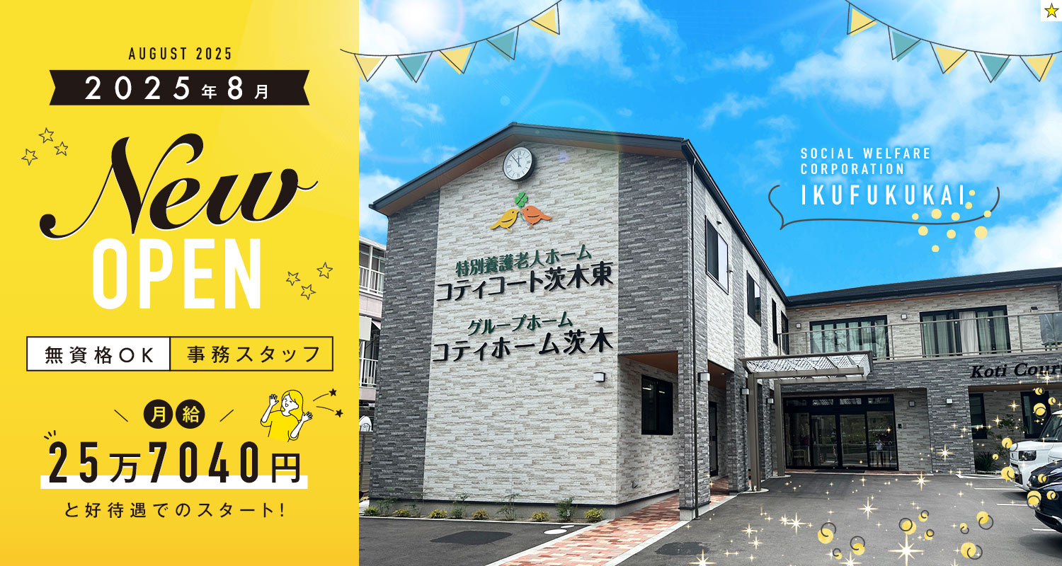 | 勤務地 | 大阪府茨木市鮎川1-12-7 (社会福祉法人育福会 本部)															 |