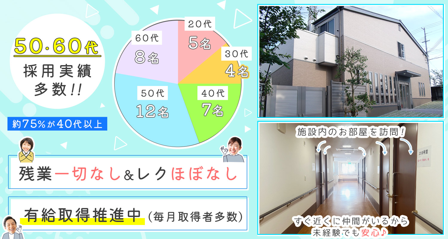 | 応募資格 | 介護職員初任者研修修了(旧ヘルパー2級)以上 #ブランクOK ※年齢不問!シニアやミドルも歓迎 ※実務経験不問 ※男女・学歴不問 ※WワークOK |