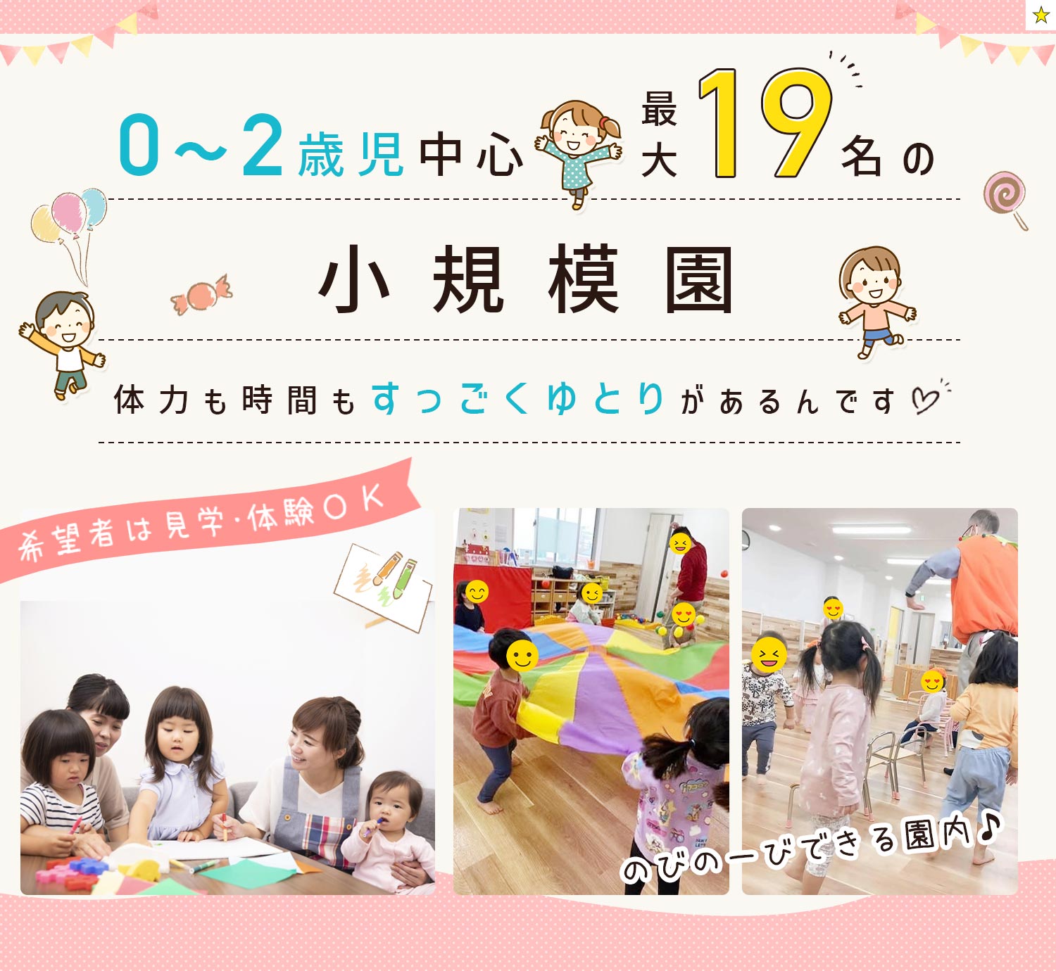 【0~2歳児、定員19名なので、ゆとりあり!】