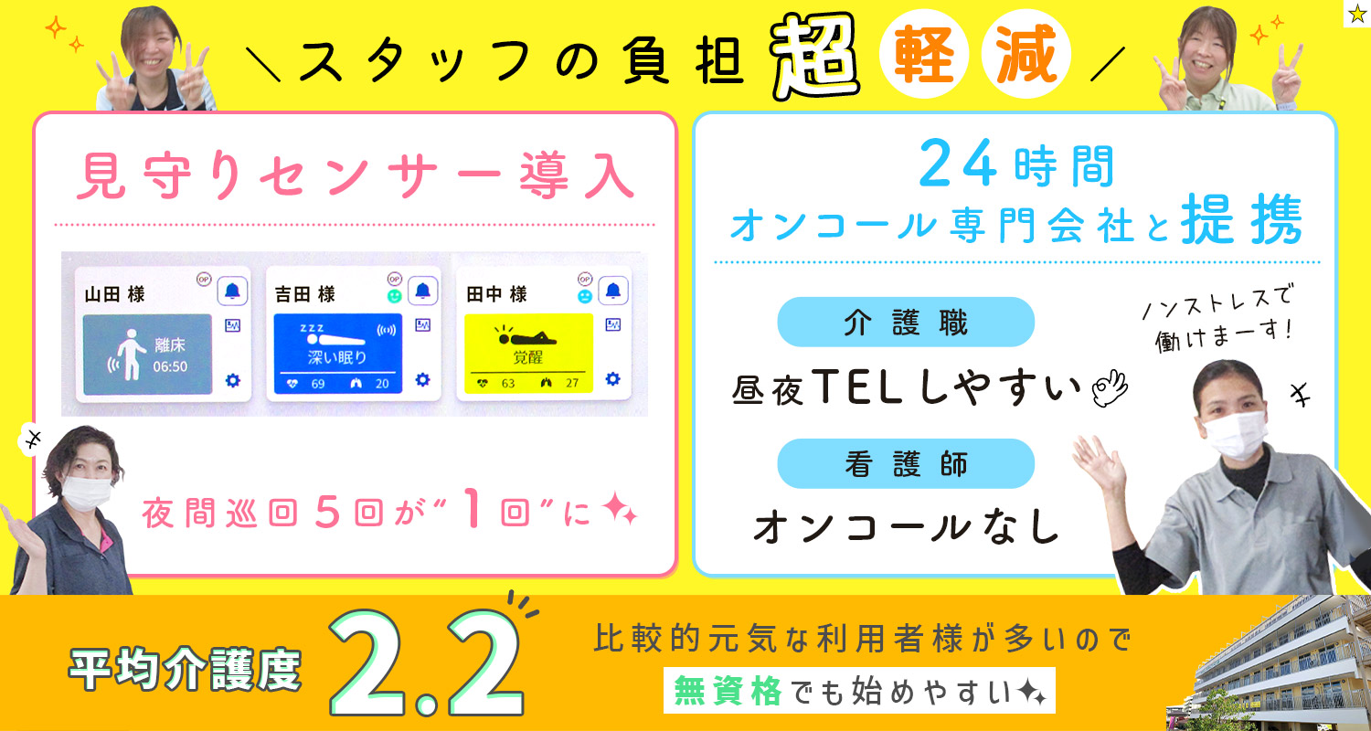 | 仕事内容 | 介護/無資格やミドルも歓迎[社] 利用者様の身の回りのお世話(食事・口腔ケア・入浴・排泄)、レクリエーション、季節行事の企画・実施など。 ◆フロア担当制 1フロア16~22名の利用者様の担当。 日によってフロアが変わる…という事がないため利用者様とすぐに仲良くなれますし、じっくり信頼関係を深めていけますよ! ◆医療連携も万全 オンコール専門会社と提携しており、24時間いつでも看護師に医療相談ができます。 夜間でも気兼ねなく電話できますし、何より安心感が違います! ◆介護記録はタブレットで入力 入力時間を大幅短縮しています。 |