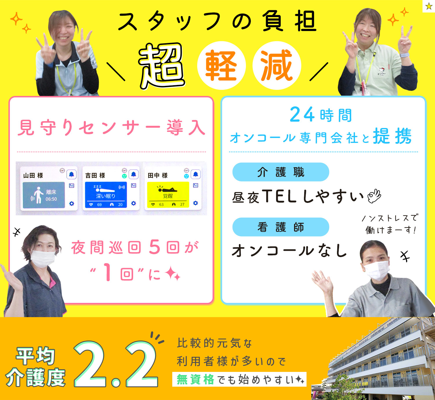 全室見守りセンサーを導入しており、夜間の巡回は1回のみ!