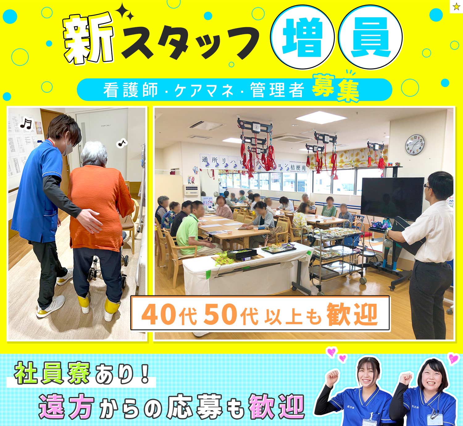 | 勤務地 | 大阪市此花区伝法4丁目3番14号/居宅介護支援事業所 桔梗苑(介護老人保健施設 桔梗苑 内) |
