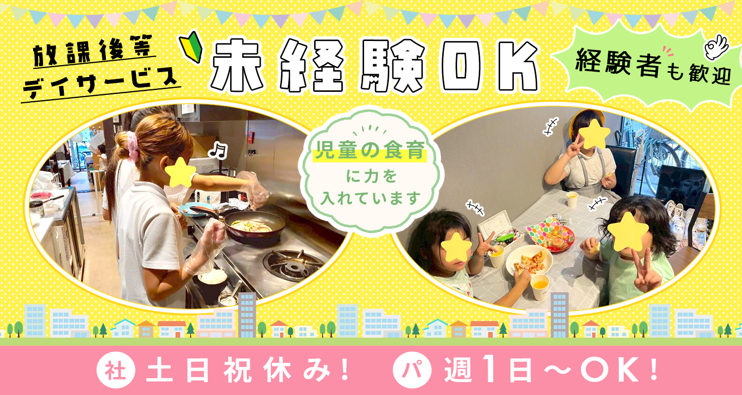 | 仕事内容 | 児童指導員・保育士/週1日OK[パ] 食育を通じて、こどもたち一人ひとりに合わせた療育を行います。 ◇小学校高学年の子どもが中心 ◇食育に力を入れています 調理の音や香りを感じながら、「今日のご飯は何だろう」と食の喜びを感じると共に、お箸の持ち方や食事のマナーなど、大人になっても役に立つ大切なことを身につけるサポートを行っています。 |