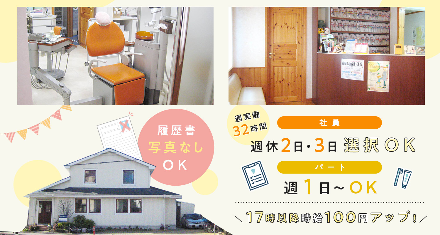| 仕事内容 | (1)受付事務・歯科助手/経験1年以上[社] (2)受付事務・歯科助手/事務等から転職OK[社] 治療のアシスタント(器具の準備や片付け)、患者様の受付・予約管理などをお願いします。 ◆具体的には・・・ 先生に必要な器具を手渡したり、器具の消毒、滅菌業務など◎ はじめは先輩も横につきながら、器具の名前から徐々に覚えていきます!経験者も未経験者も、先輩がフォローしますのでご安心ください! |