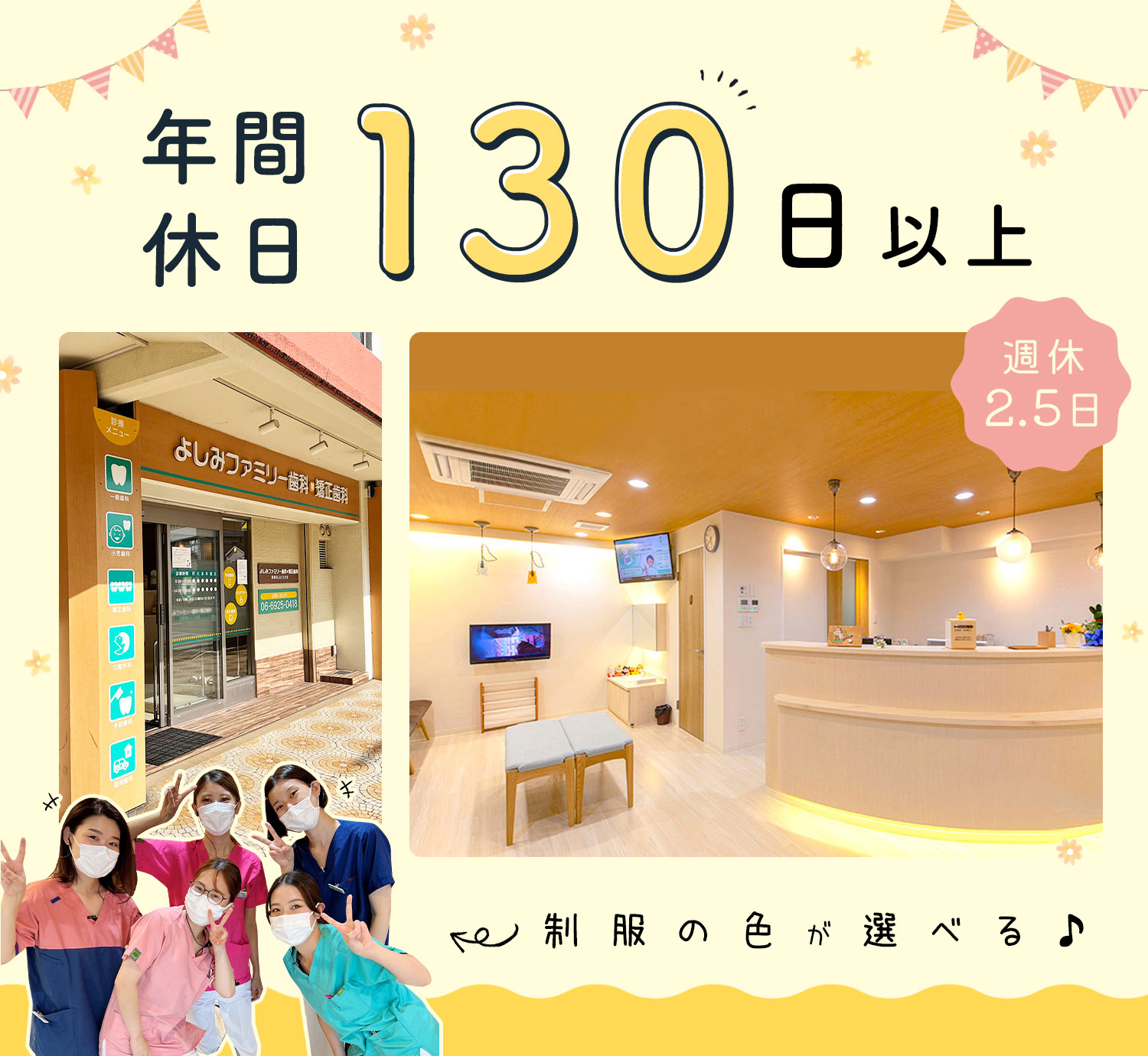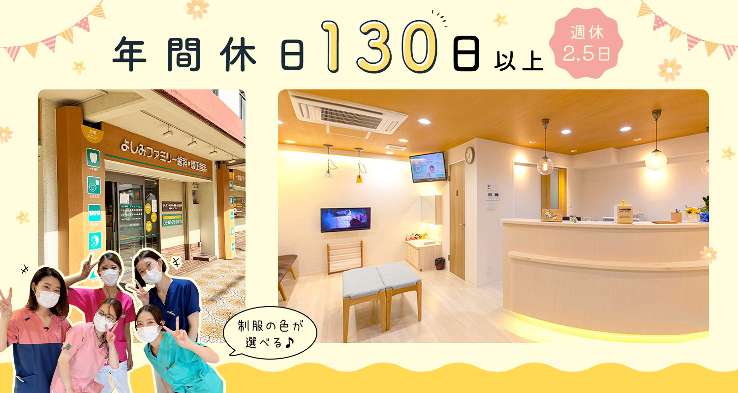 | 仕事内容 | (1)事務受付・歯科助手/年間休日130日以上[社] (2)保育士資格取得者の事務受付・歯科助手[社] 患者様の受付・会計・予約管理のほか、 治療のアシスタント(器具の準備・片付け等)をお願いします。 <<制服はお好きな色を選択OK>> 自分らしい色の制服を着てのびのびと活躍してください! |