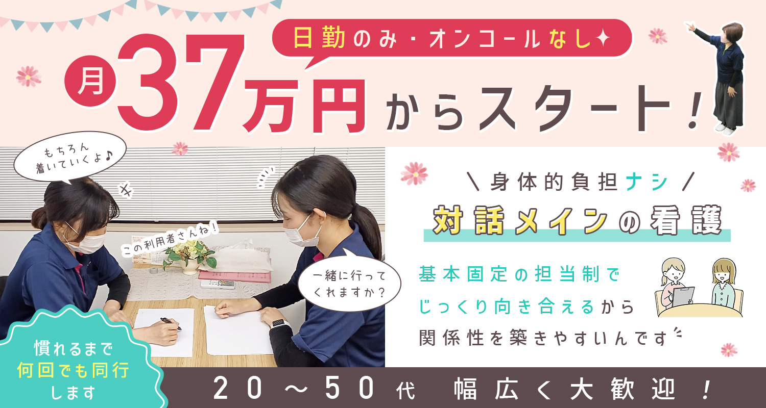 訪問看護未経験でも『月給37万円以上』と好待遇☆