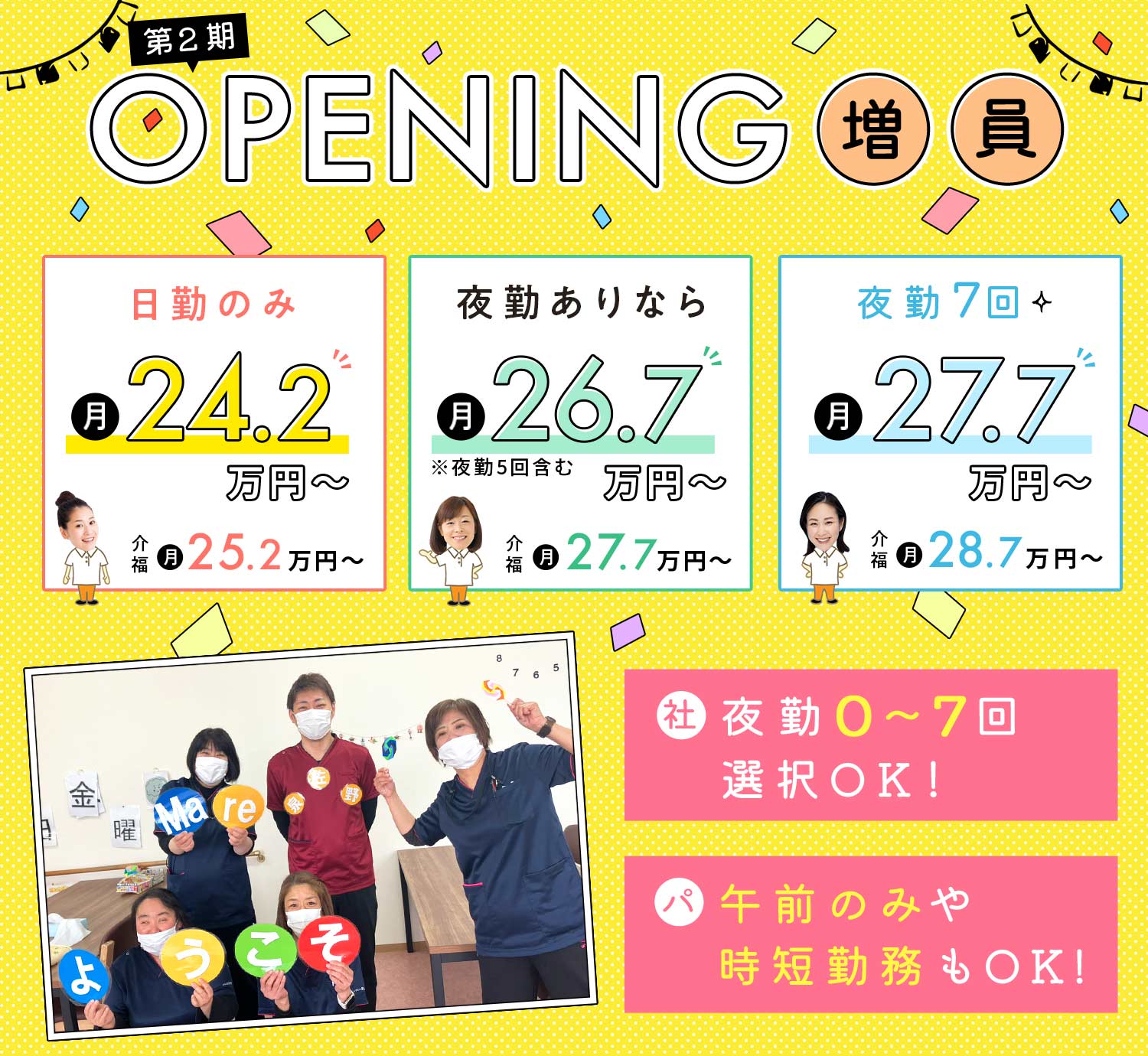 | 仕事内容 | (1)介護/第2期オープニングの介護職[パ] (2)介護福祉士/第2期オープニング[パ] 2025年OPEN、定員27名の住宅型有料老人ホームでの介護業務。 入居者様の身の回りのお世話(食事・口腔ケア・入浴・排泄)などをお願いします。 ■毎日のレクリエーションはなし! 定員27名の小規模施設なので、ゆっくりと入居者様とお話しをしたり散歩をしたり。日々レクの準備などで時間を取られることなく、じっくり向き合える環境です! ※レクリエーションは季節イベントがメイン(節分、ひなまつり等) |