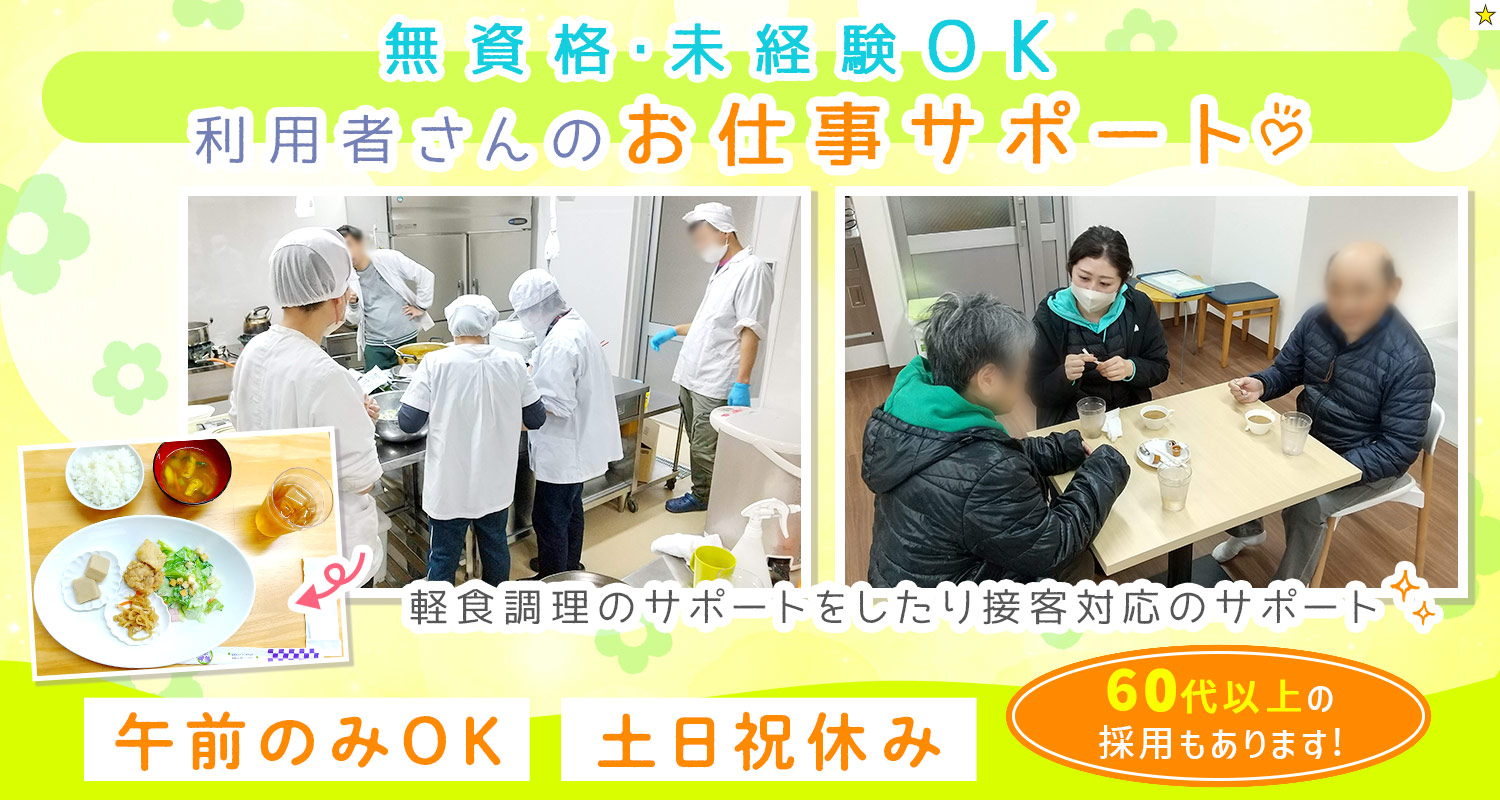 | 仕事内容 | パートの生活支援員/事務等から転職OK[パ] 2025年12月に移転したばかりの新しいカフェと弁当屋「たんぽぽ亭」でのお仕事で、利用者様と一緒にコーヒーやその他飲料の提供、接客対応、軽食や弁当の調理・盛付などをお願いします。 □□□ 利用者様の中には作業がなかなか上手に出来なかったり、周囲とのコミュニケーションはちょっと苦手…という方もいらっしゃいます。 それでも、私たちスタッフとの関わりの中で少しずつ出来る事が増えたり、信頼関係を築くことで些細な感情の変化を読み取れるようになったり、たくさんの成長ややりがいを感じることができる仕事です◎ |