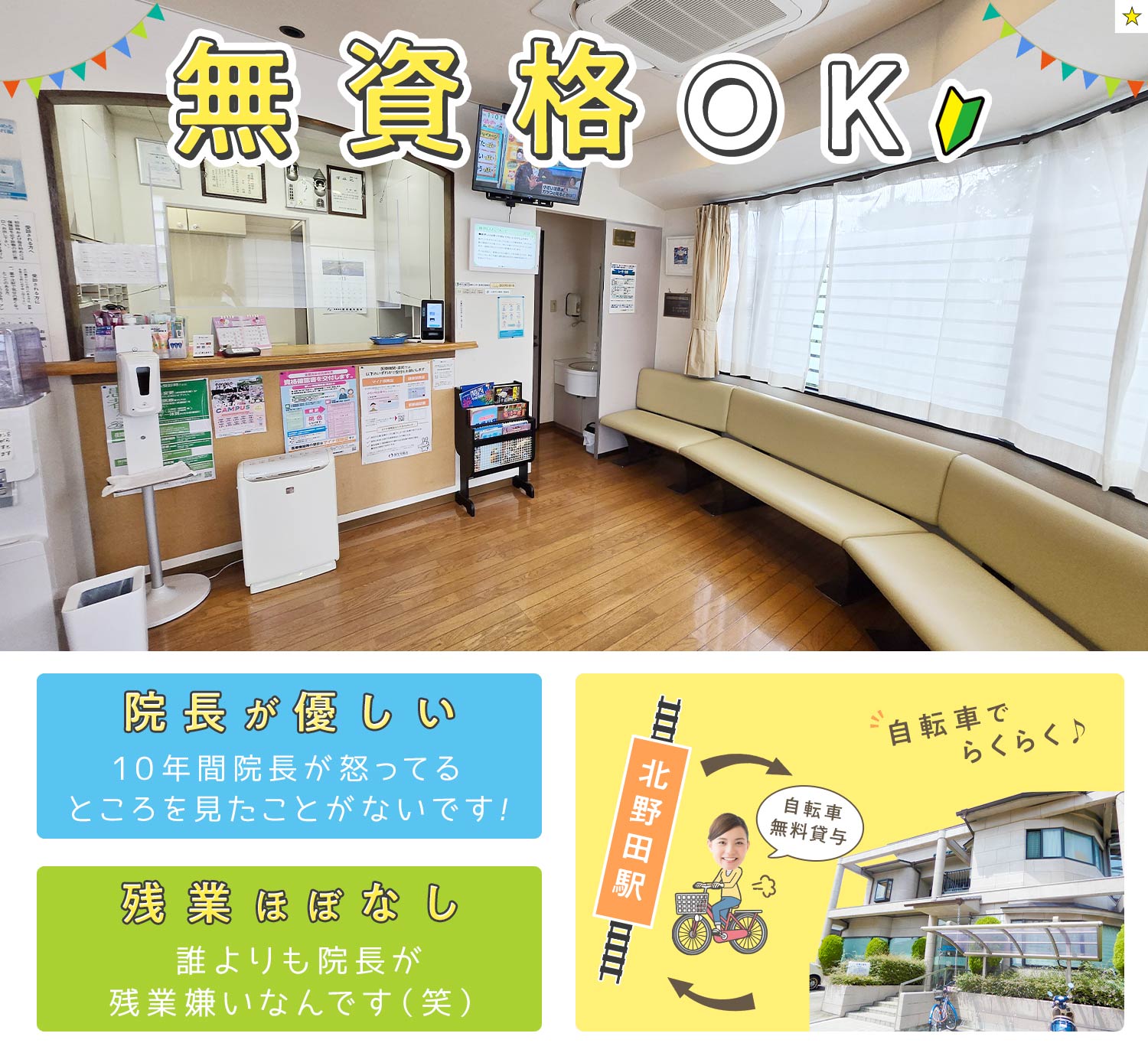 | 応募資格 | 無資格・未経験OK #ブランクOK □□□ ※歯科医院での歯科助手や受付の経験者も歓迎 |