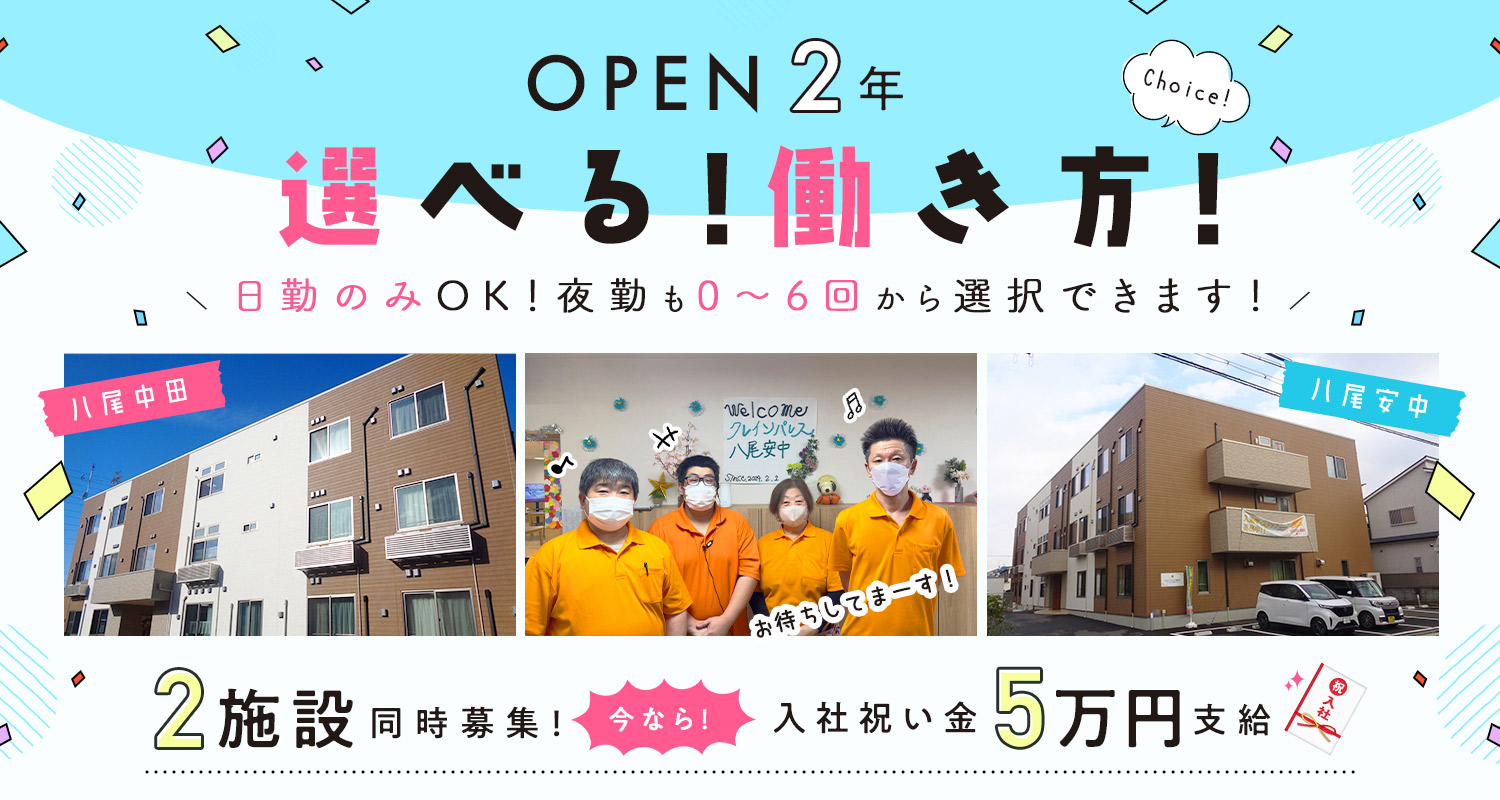 クレインパレス八尾中田/八尾安中は、どちらも2024年オープン!