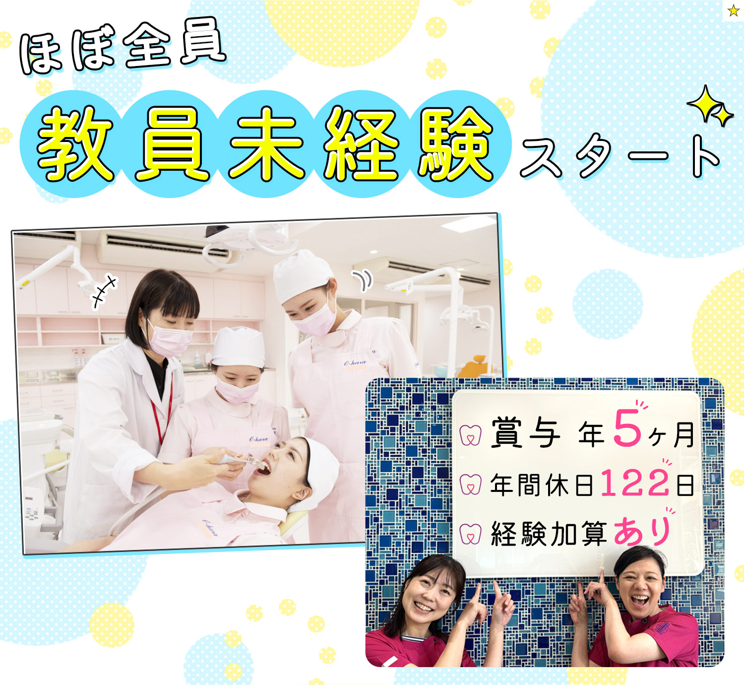 | 応募資格 | 歯科衛生士免許 ※歯科衛生士としての実務経験や年齢不問! ※教員の経験が無くてもOK! ※歯科衛生士の実務経験がある方は優遇! |