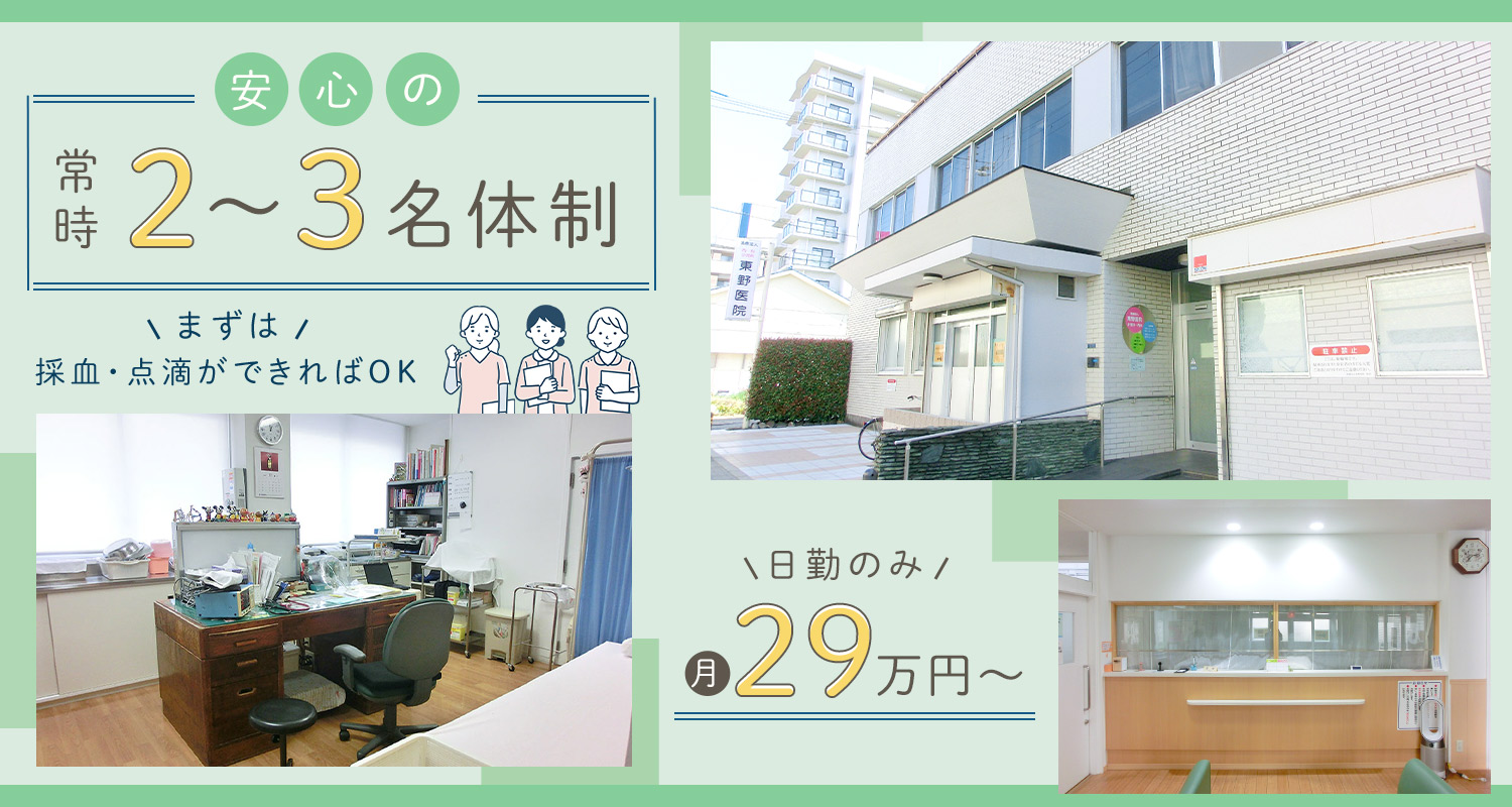 | 仕事内容 | クリニックの看護師[社] 血圧測定、検尿、カルテ作成、注射、点滴、採血、レントゲン撮影の準備、検尿、診察介助、吸入準備、浣腸、心電図、医師のサポートなど看護師業務全般をお願いします。 ※看護師は『常時2~3名』ゆとりの人員体制 一部の時間帯は3名体制をとっています。(月・木・土の午前、火の午後) ★科目未経験の方も歓迎! 子どもさんも多く来院されるため、待合室にはキッズスペースあり。 さらに、予防接種に来た子どもさんが過ごすための個室を設けており、他の患者様から風邪がうつったりする心配もなく安心です。 子どもさんの採血をすることはありません。 |