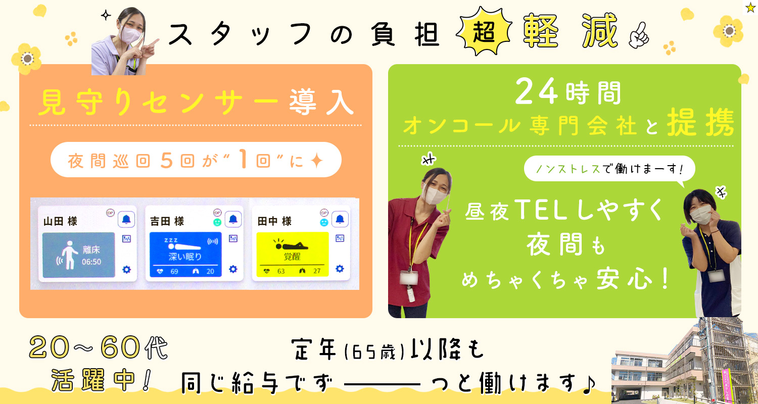 夜勤は月4~8回相談OK!ライフスタイルに合わせて無理なく働けます☆