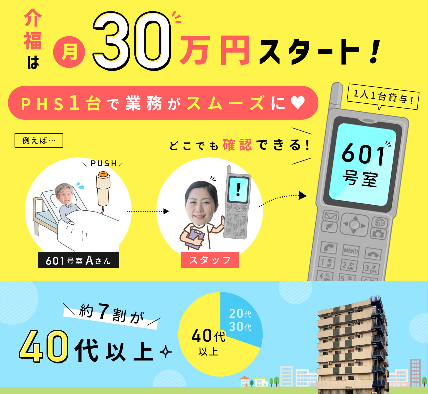 ◎ナースコール・来客対応・スタッフ間の情報共有など、内部での連絡がPHS1台で完結