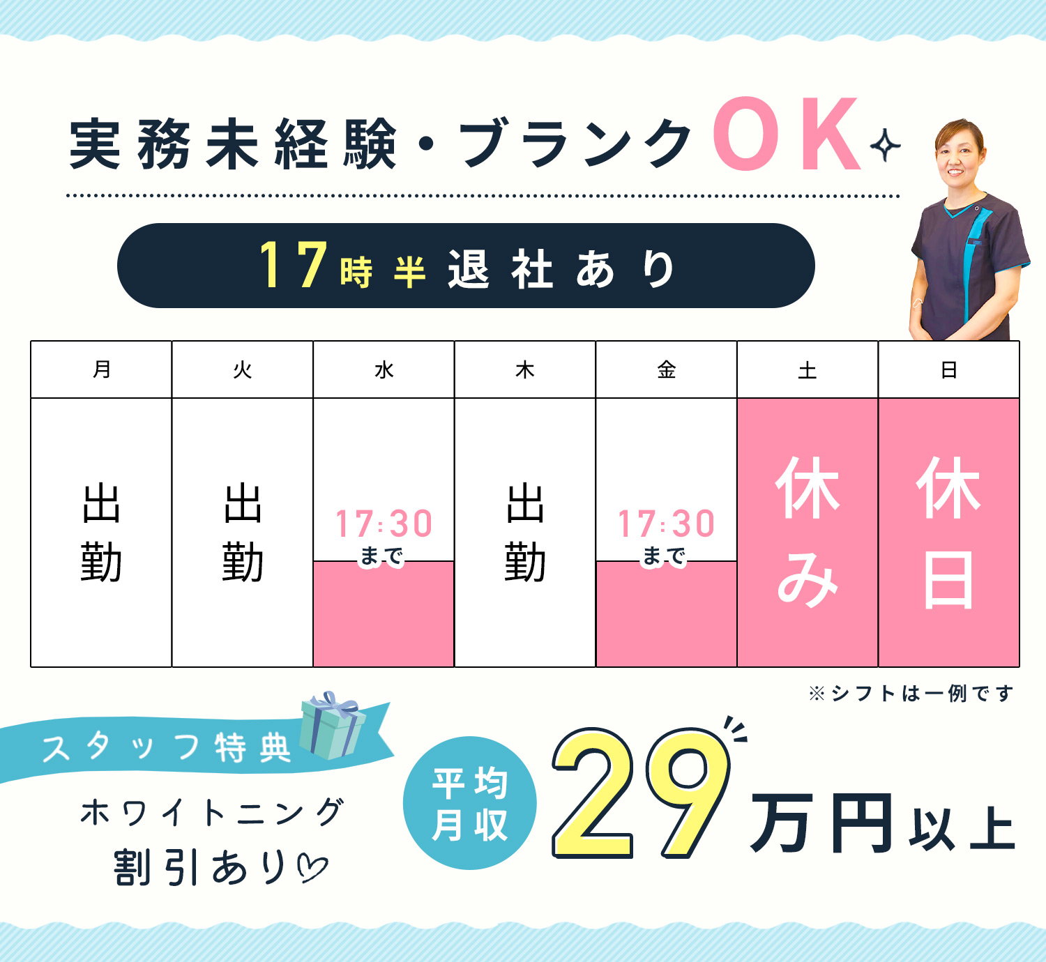 【17時半退勤の日あり!無理のないシフトで働ける】