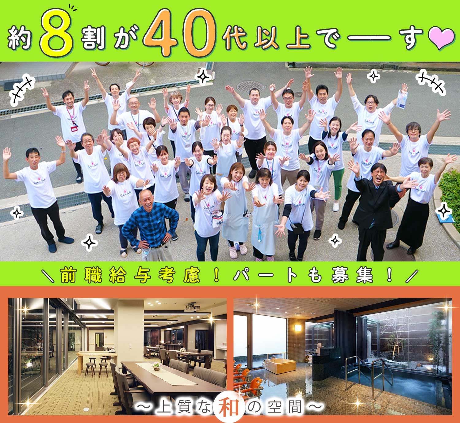 | 待 遇 | #賞与あり 年2回 #昇給あり 毎年UP! 処遇改善交付金 社会保険完備 交通費支給 (実費・上限月3万5000円) ※自宅から直線距離で2km以上 バイク・自転車通勤OK 財形貯蓄 家族手当 (子一人で7000円、2人で1万円、3人で1万3000円) 退職金制度あり (勤続1年以上) |
