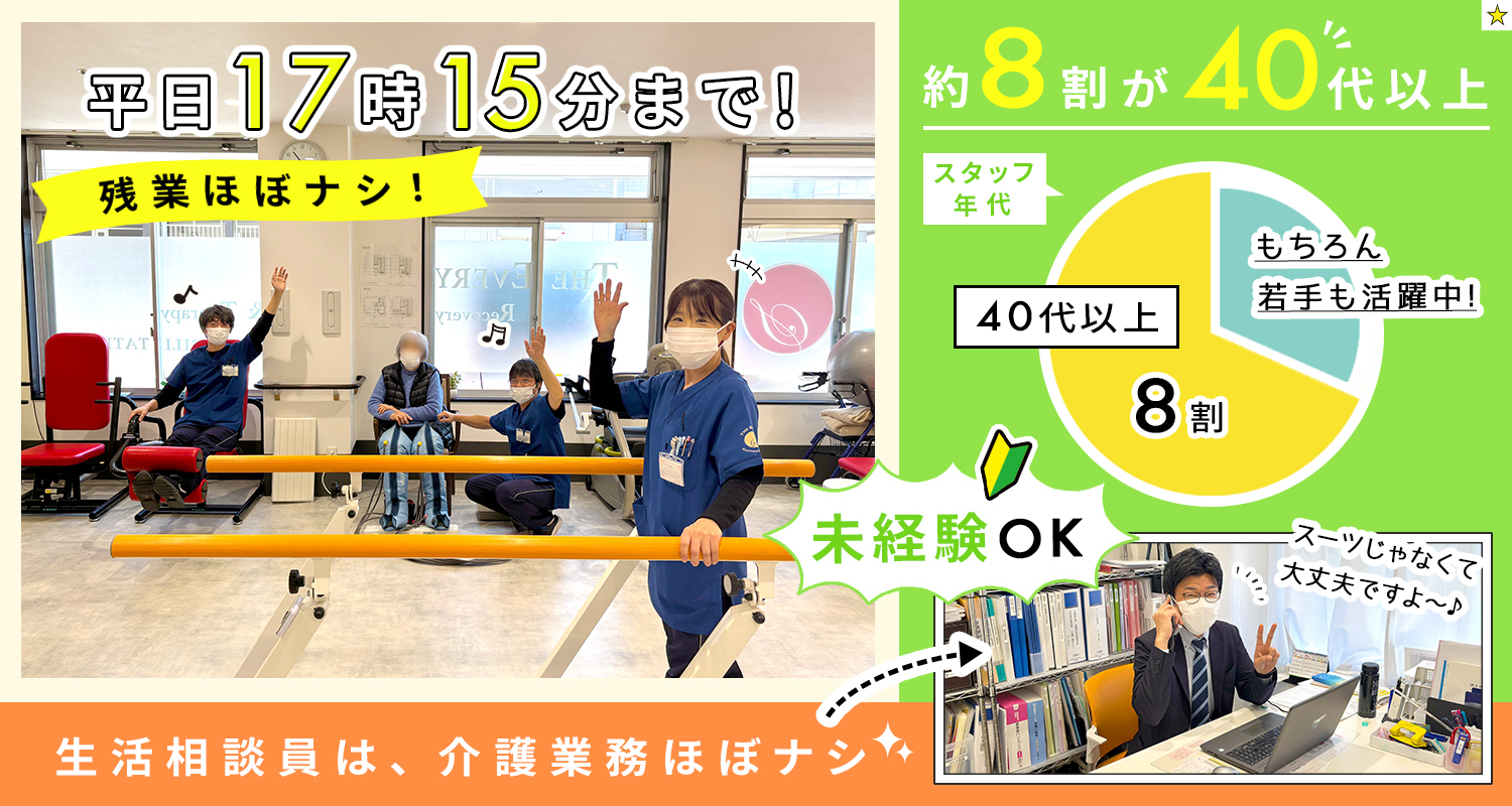 | 応募資格 | 介護福祉士または社会福祉士または介護支援専門員 要普通自動車免許(AT限定OK) #ブランクOK ※経験不問(デイ・介護施設などの現場未経験OK) |