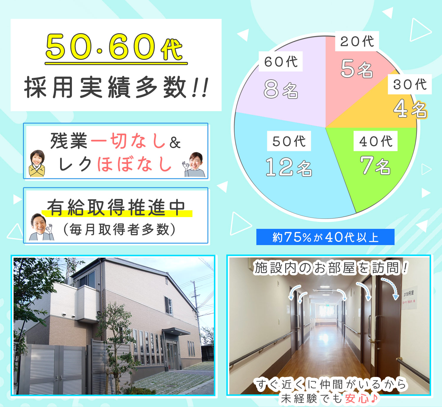 50~60代の採用実績も多数あり、在籍する職員も半数以上がこの世代。