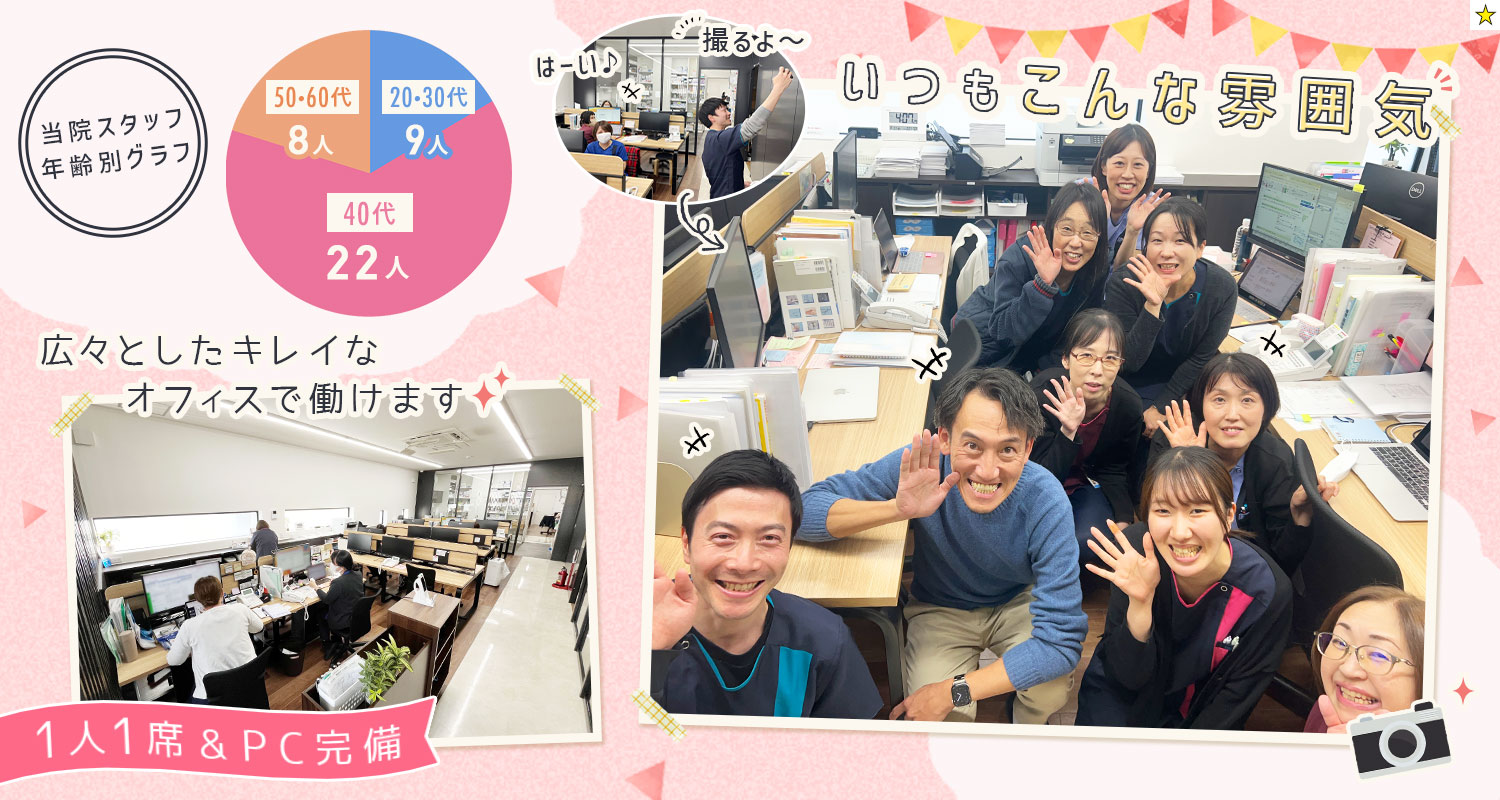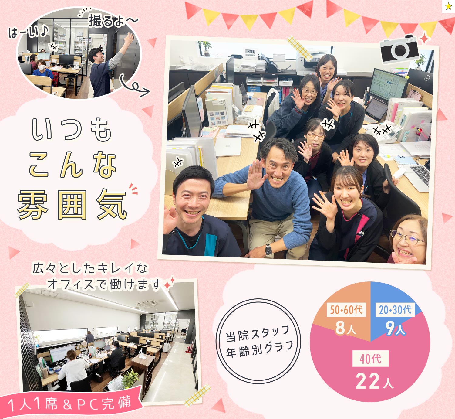 スタッフは全員常勤で、総勢39名!8割が20代〜40代の元気な職場です。