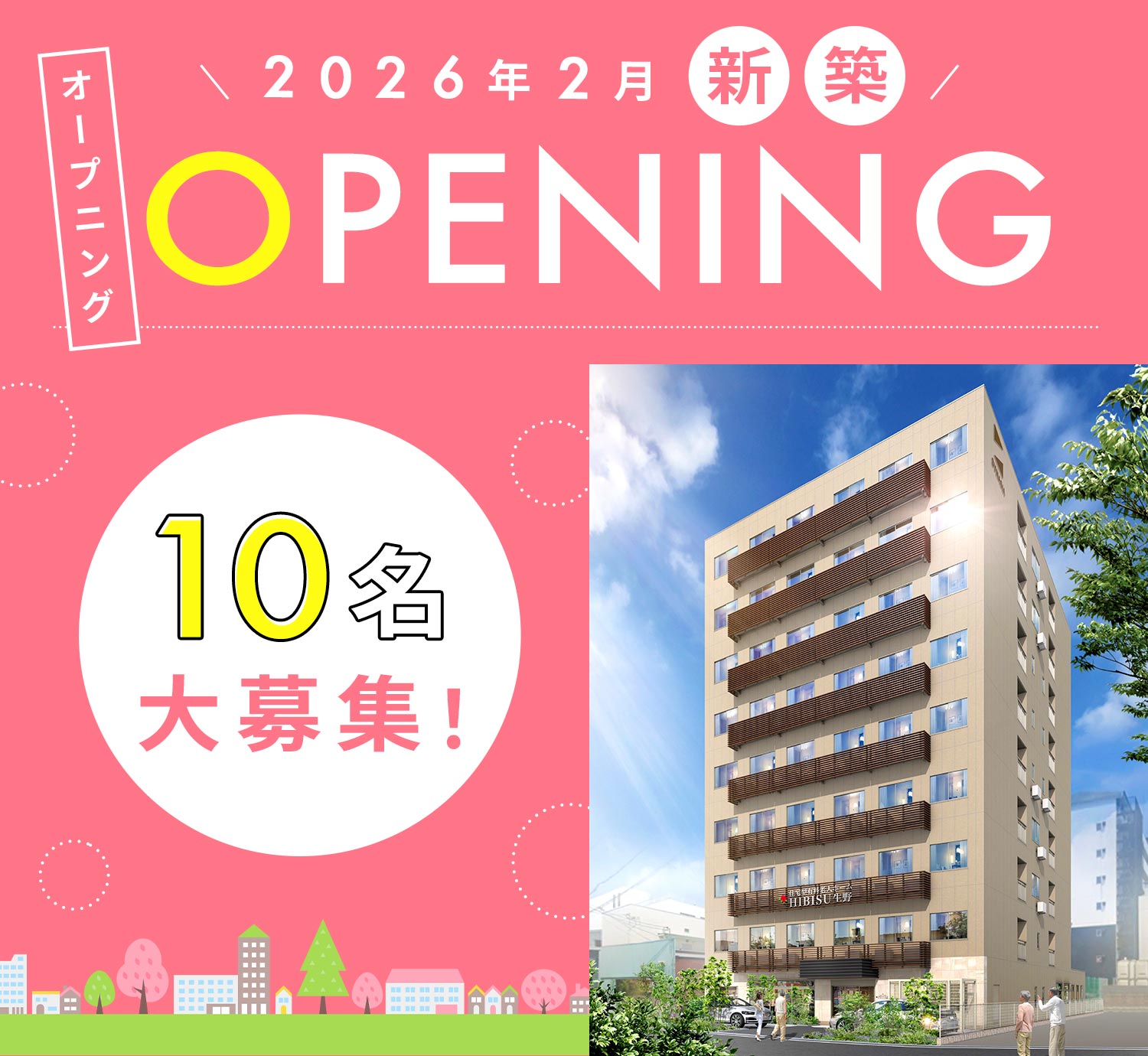 | 仕事内容 | 夜勤専従の介護職/オープニング[パ] 2026年2月完全新築OPEN!9階建ての住宅型有料老人ホーム。 入居者様の居室の見回りやトイレのサポート、夕食・朝食の準備など夜間の介護業務全般をお任せします。 #オープニングスタッフ |