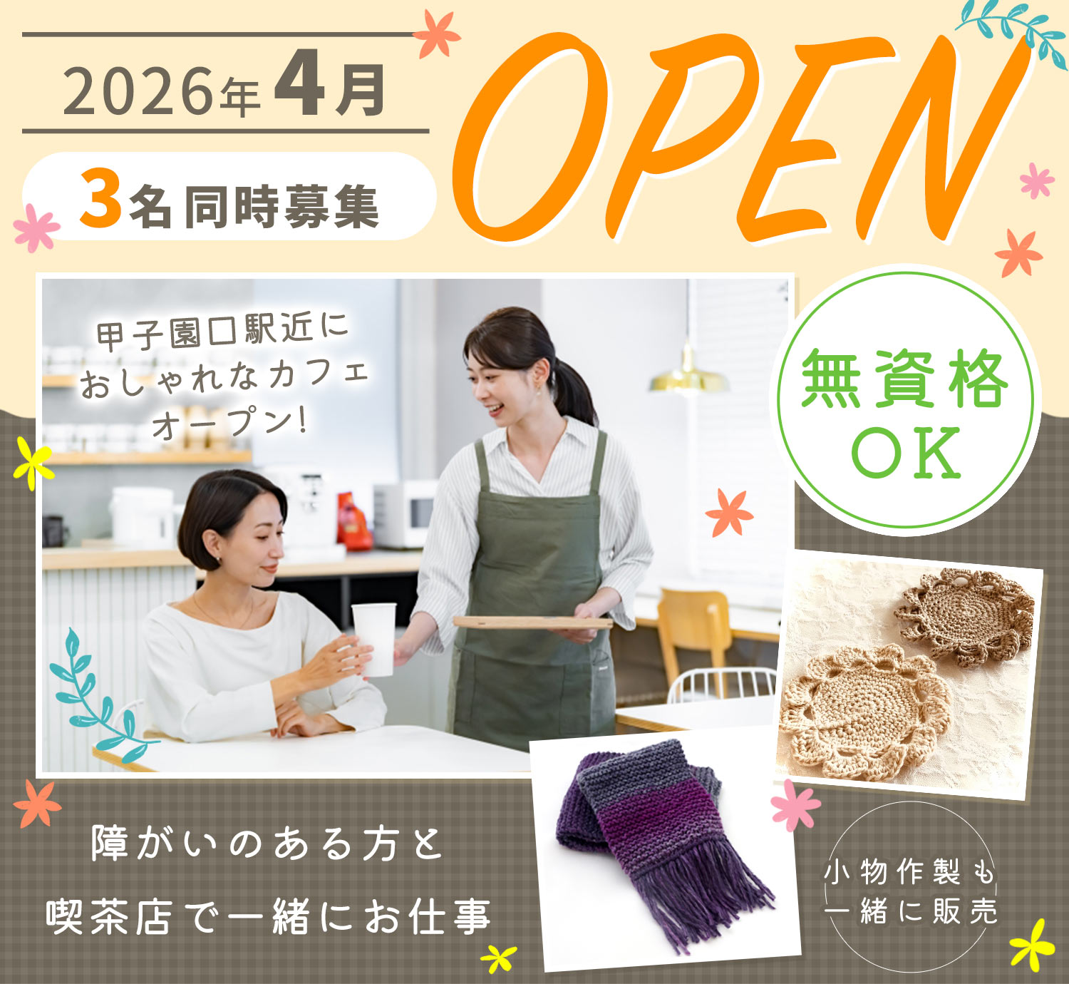 ※利用者様にはカフェでの調理、提供などの業務のほか、アクセサリーや編み物などの小物を作成する軽作業を行っていただく予定です。