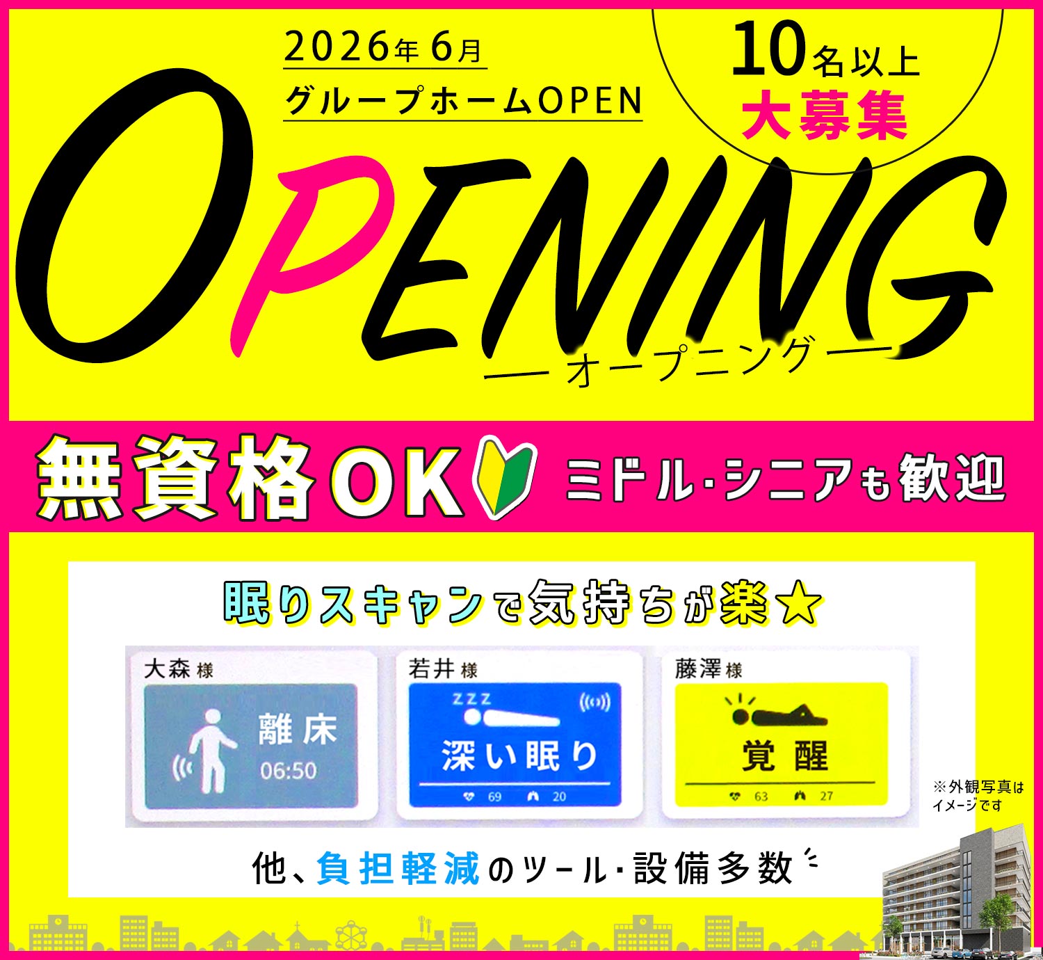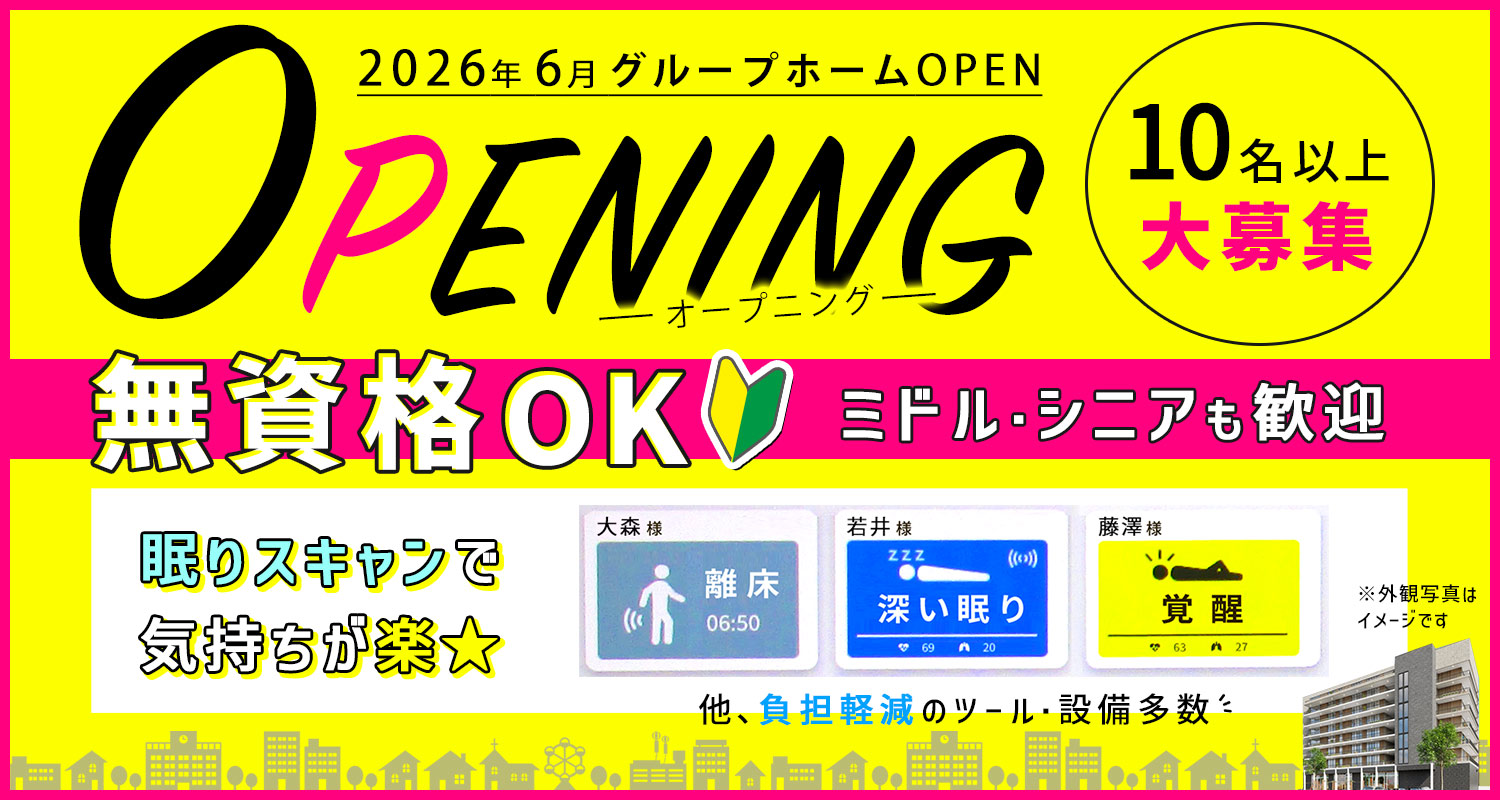 2026年6月、グループホームの先行OPENに伴ってオープニング募集。