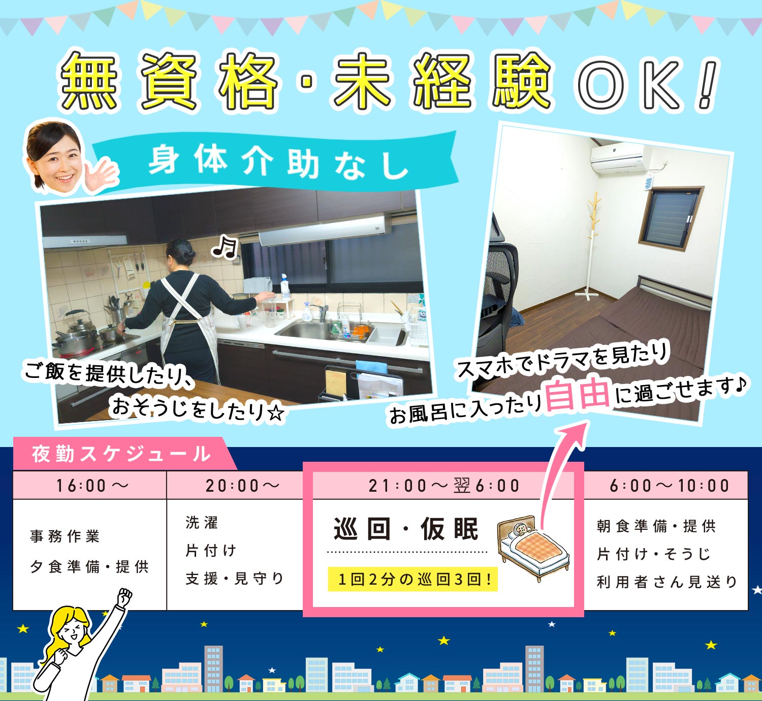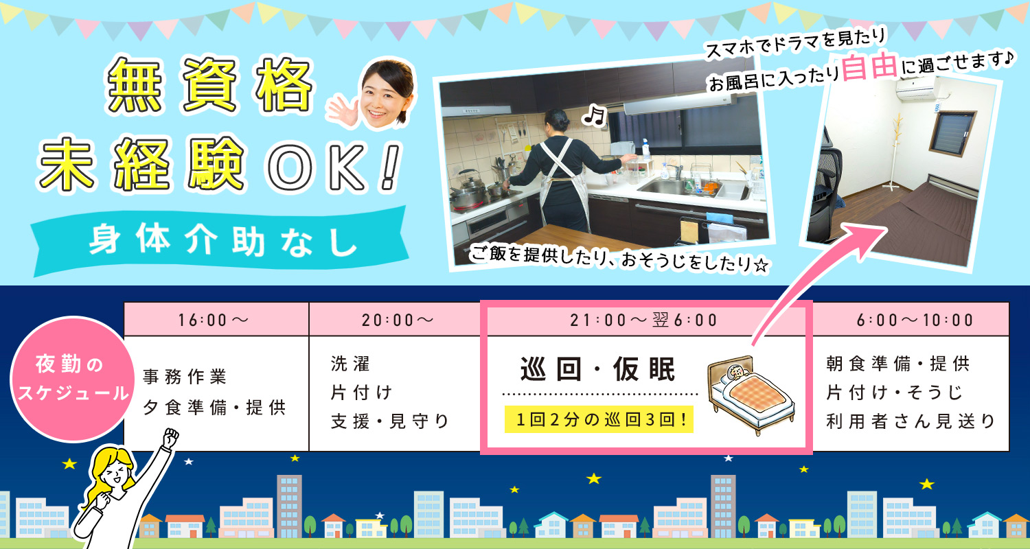 仕事内容 夜間の見守りサポート・介護職/シニアやミドルも歓迎[パ]