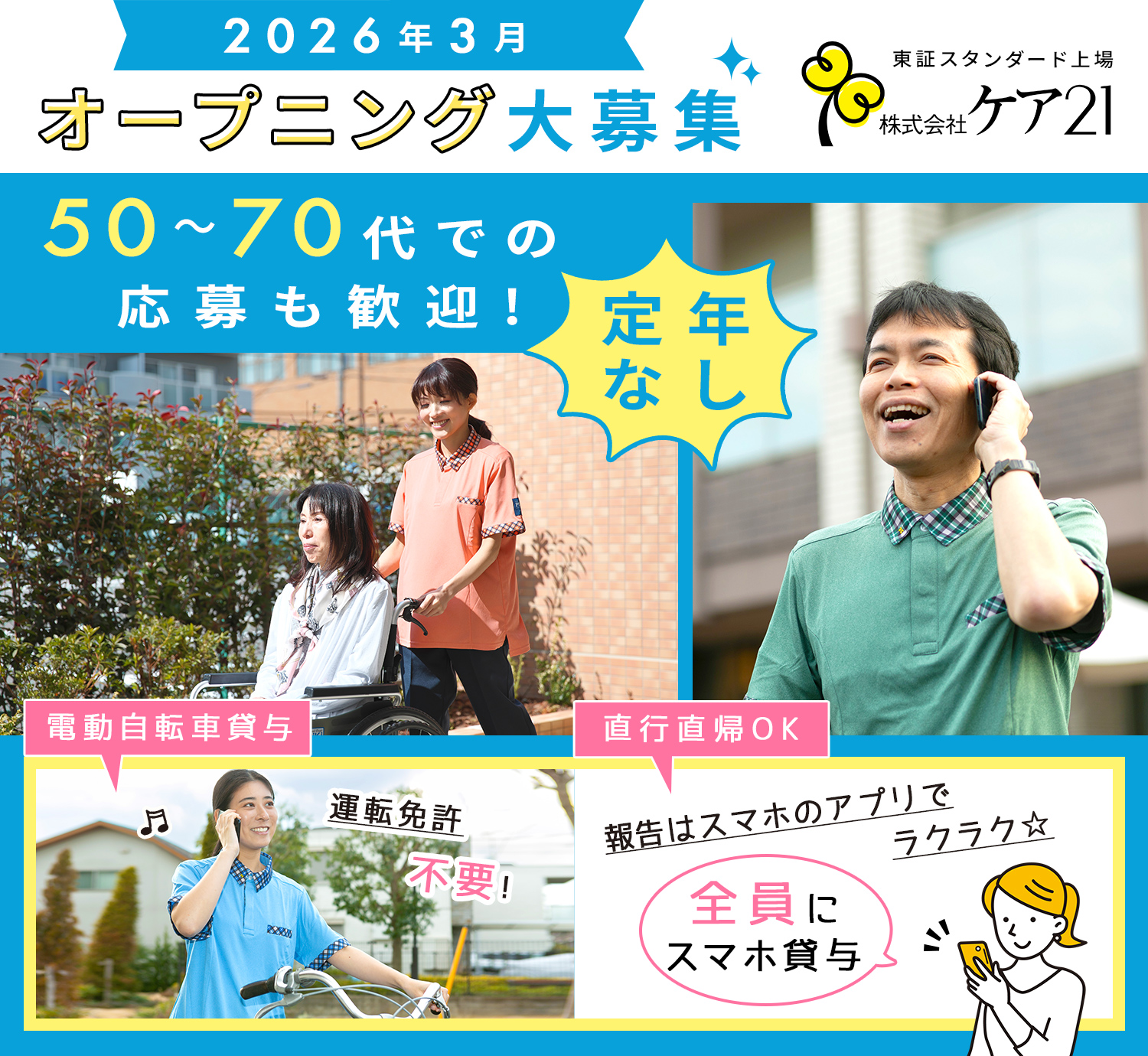 ★ケア21は定年なし!年齢不問!50・60・70代の正社員も多数活躍中!(平均年齢47歳)