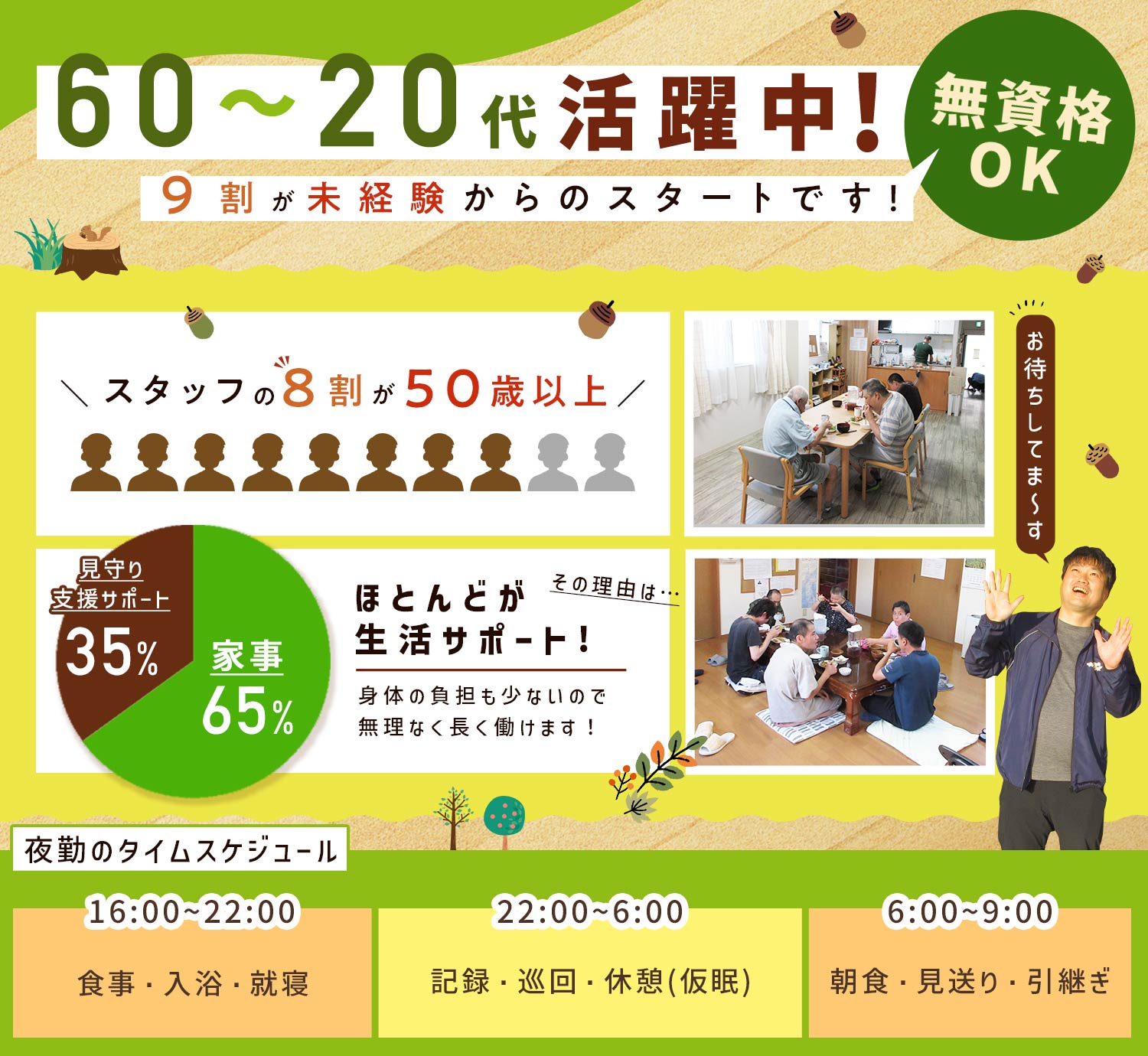 実際、スタッフ全体の9割以上が福祉業界未経験スタートで、