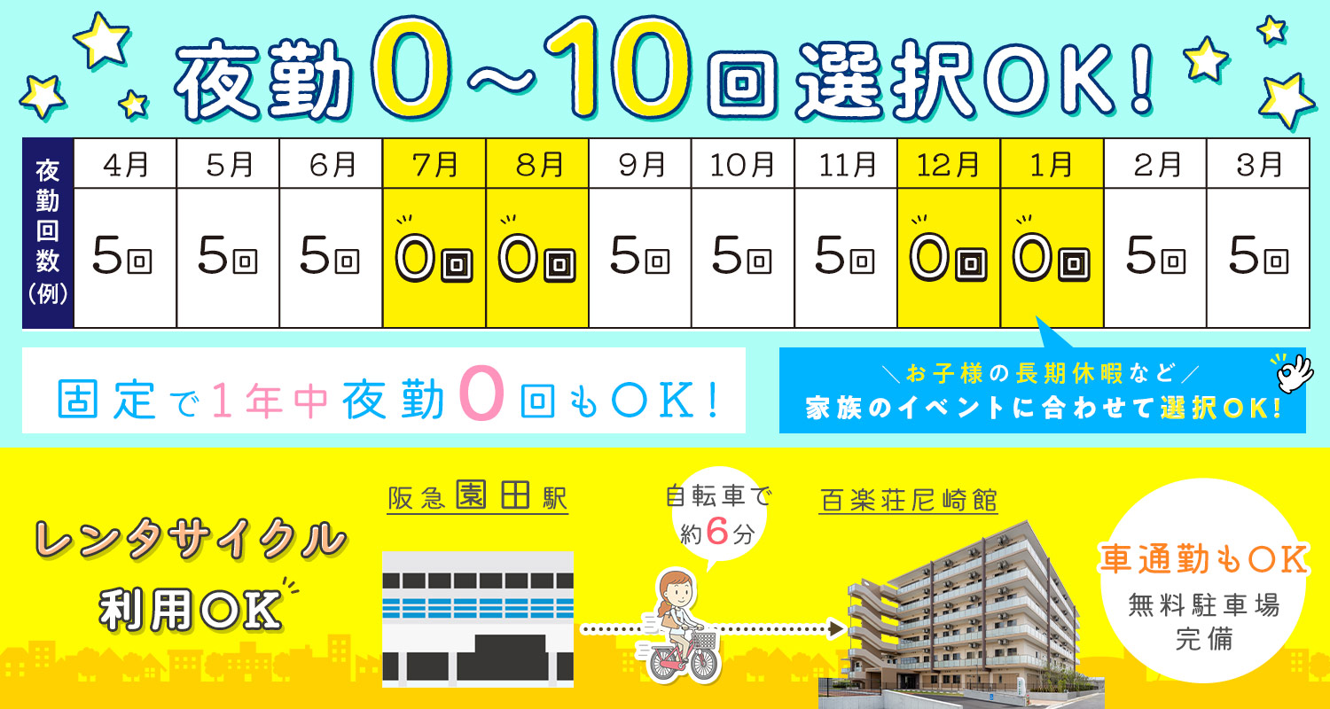 また、夜勤回数は0~10回で相談可能で、月ごとに変更もOK◎