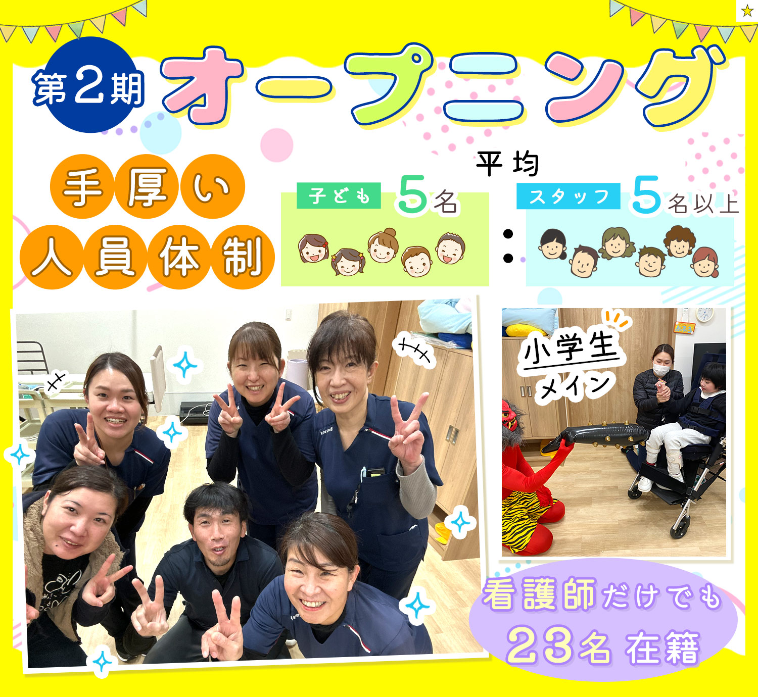 正社員は「訪問看護」と「放課後等デイサービス」を兼務する働き方です(パートは希望者のみ)。