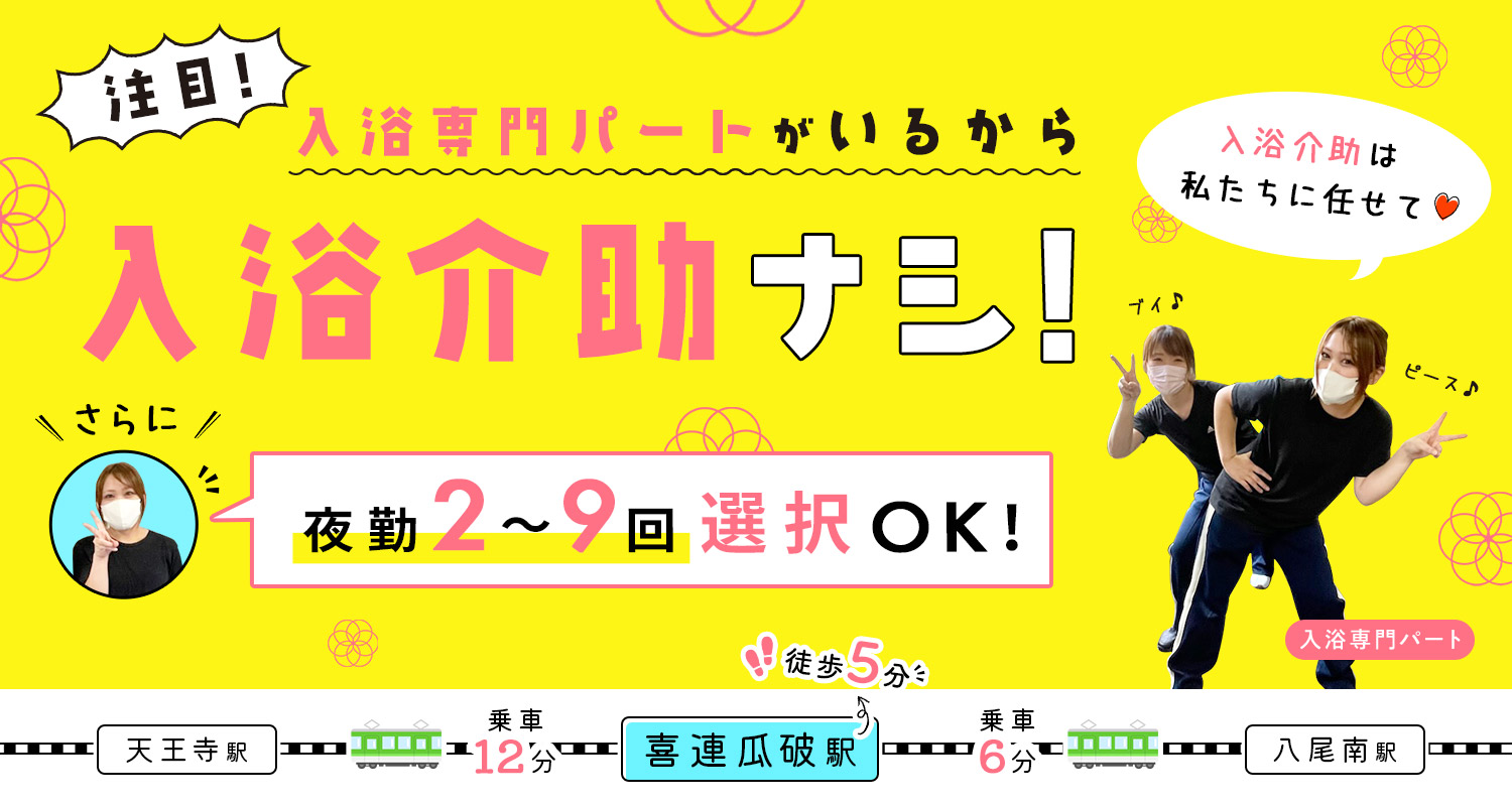 【早番・遅番なしOK!夜勤2~9回で相談可能】