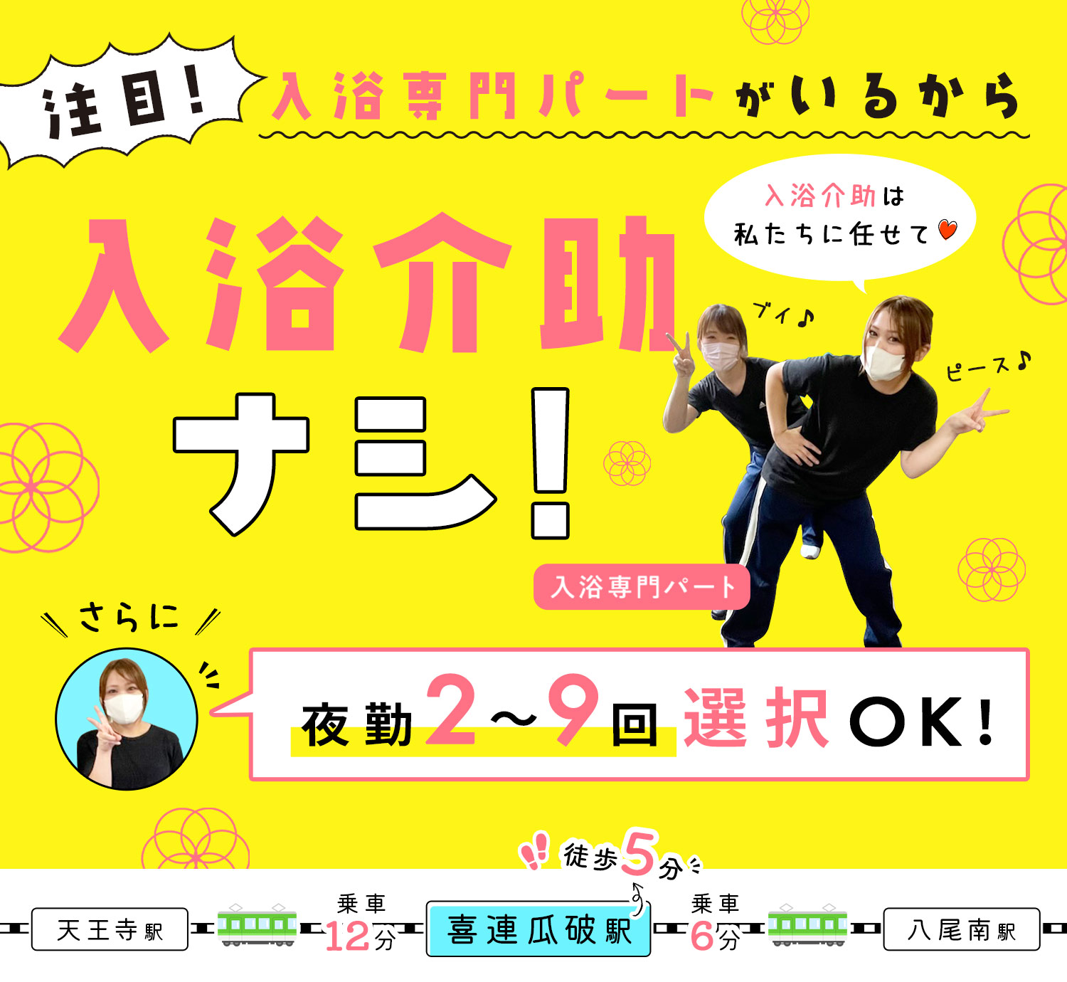 【早番・遅番なしOK!夜勤2~9回で相談可能】