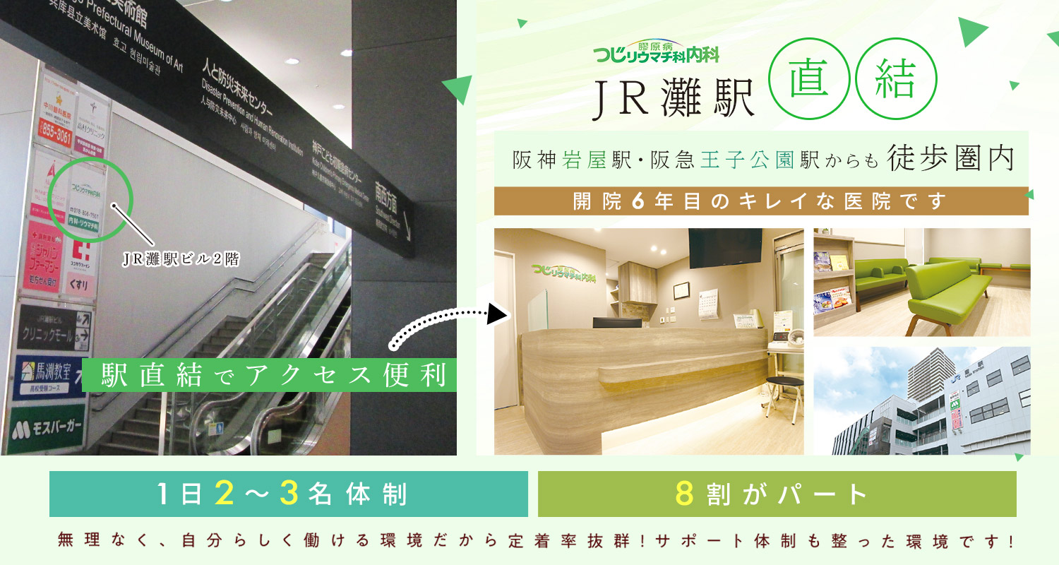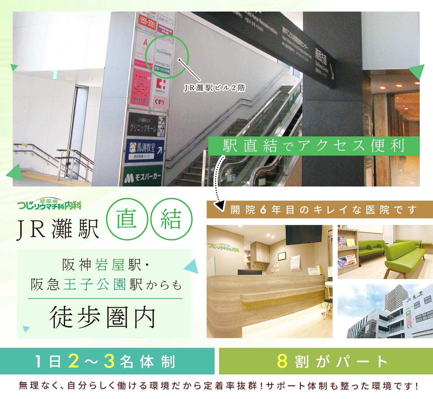 | 勤務地 | 兵庫県神戸市灘区岩屋北町7丁目3番2号 JR灘駅ビル2階 |