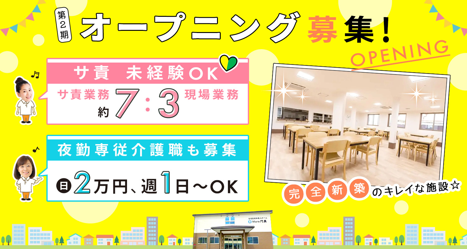 | 勤務地 | 門真市石原町7番1号/住宅型有料老人ホームMare門真 |