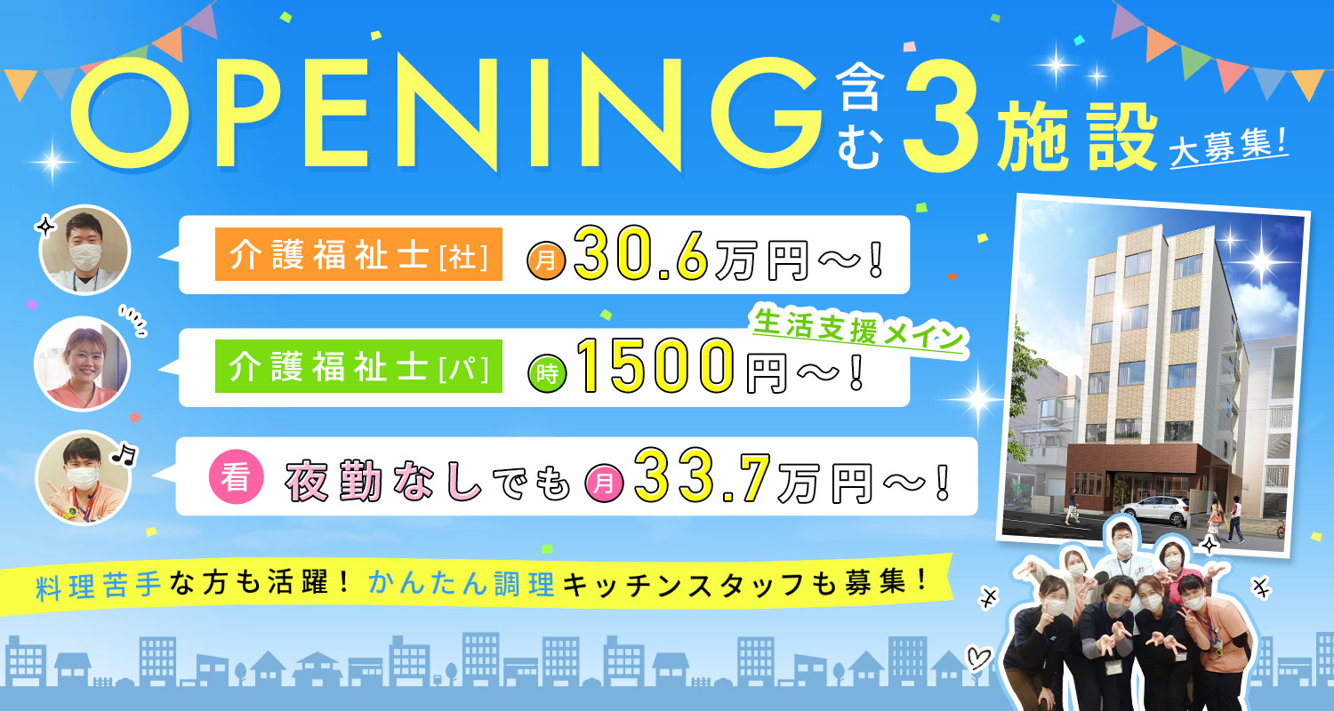 | 仕事内容 | (1)介護福祉士[社] (2)介護職[社] 住宅型有料老人ホームで介護業務全般。※施設内の訪問介護業務含む 入居者様の身の回りのお世話(食事・口腔ケア・入浴・排泄)や、レクリエーション、季節行事の企画・実施をお願いします。 ※今回は、新施設を含む3拠点同時募集!(勤務地はご希望に応じます!) ★2025年11月に新施設オープン ・看護師24時間常駐 医療面で気になることがあれば、すぐに看護師に相談できます。 ★オープニング施設(壱番館)には見守りセンサーあり! インカム&チャット機能のある、スマホを1人1台貸与。 各居室に見守りセンサーがあり、全員に通知が届くので、チームでフォローし合えます。 例えば、転倒リスクのある利用者様が立ち上がると通知が届き、 近くにいるスタッフがすぐに様子を見に行けたり、 夜勤帯でも複数人で気づくことができたり、 アラームが鳴っても、1人に任せきりにならず複数でフォローしたり‥‥etc. 通知がチーム全体に届くから「1人だけに負担が集中しない」仕組みが作れるんです! スタッフ同士の連携がスムーズにでき、「チームで見守る介護」が実現できます◎ |