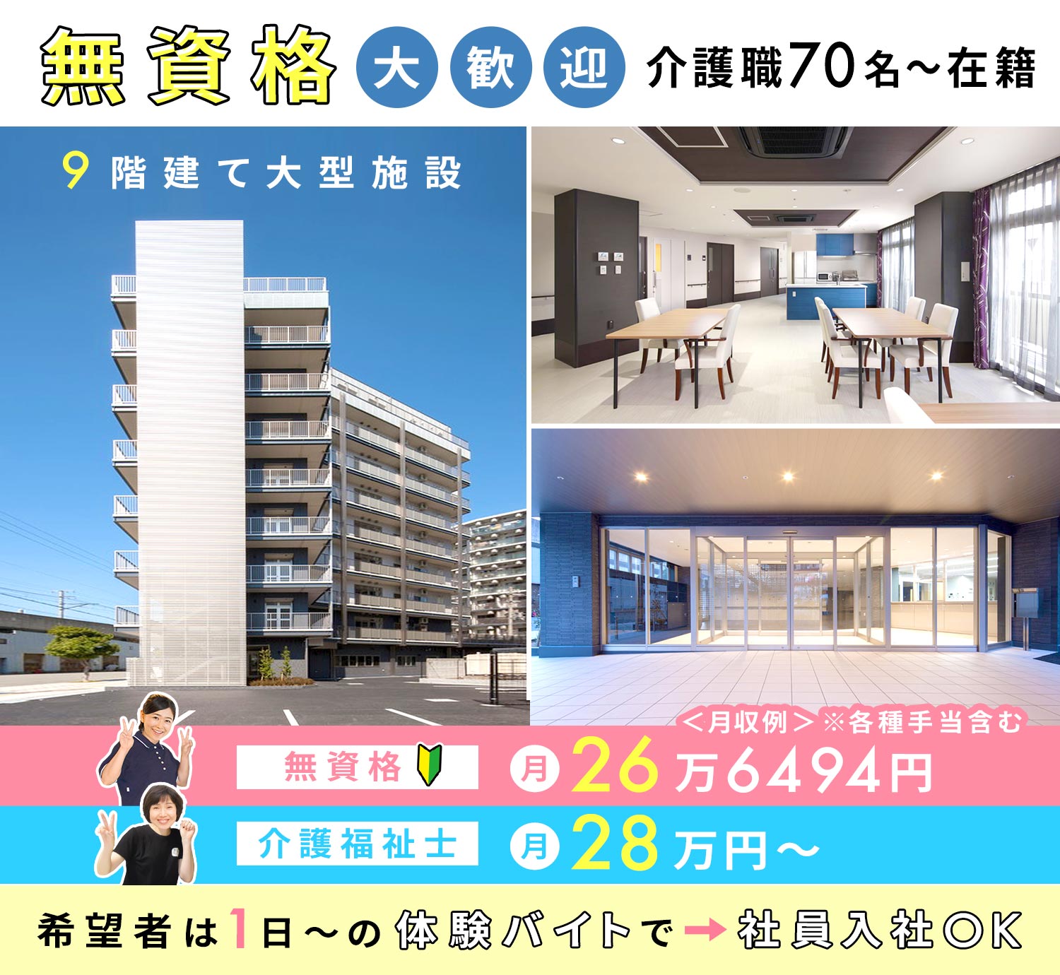 体験=入社ではありませんし、施設とあなたお互いに納得した上で入社できる制度です☆