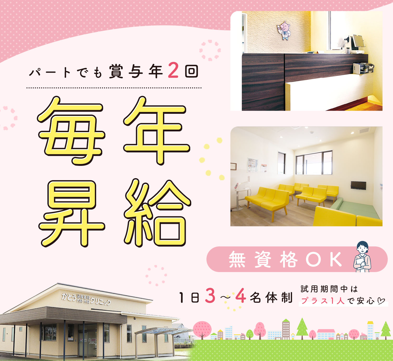 | 給 与 | 時給1200~1700円 ※午後診療の勤務時は時給1300円~1800円 ※経験・能力を考慮 ※試用期間2ヶ月(時給1180円) |