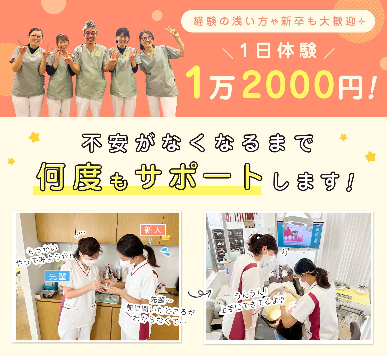 | 応募資格 | 歯科衛生士資格をお持ちの方 新卒・第二新卒も歓迎(前の職場をスグに辞めてしまった方もOK) #ブランクOK (10年ブランクのある方もOK) |