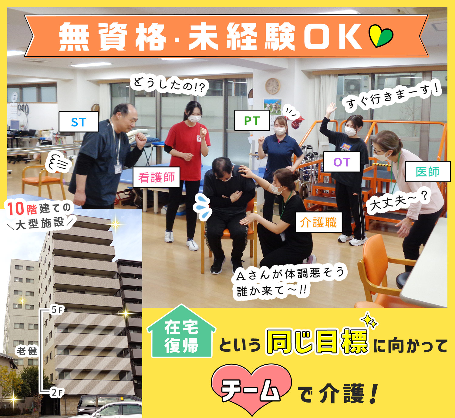 | 仕事内容 | 介護職/賞与年2回+ミニ賞与年3回[社] 介護老人保健施設での介護業務。 利用者様の身の回りのお世話(食事・口腔ケア・入浴・排泄)や、レクリエーション、リハビリ補助などをお願いします。 ★100名以上の仲間が働く職場 アネシス寺田町は10階建ての大型施設で、うち4フロアが老健です! ★各分野のプロが連携!やりがいの大きな老健の介護 介護老人保健施設は、利用者様の自立した暮らしを支援する施設です。 そして創生会の老健には介護職をはじめ、看護師、PT・OT・STなど12もの分野のプロフェッショナルが在籍しています。 職種の垣根を越え、チームとして連携しながらリハビリをサポートしており、在宅復帰や目標を叶えた際には利用者様・ご家族と喜びを分かち合ったり、他にはないやりがい・達成感を感じながら働けますよ◎ |