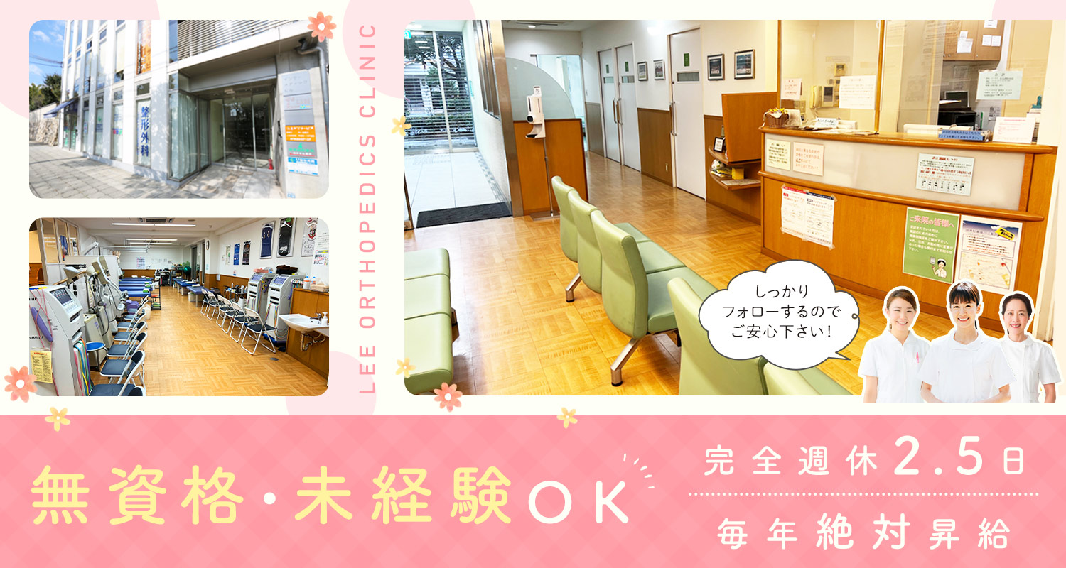 | 仕事内容 | 事務受付・医療事務/事務等から転職OK[社] 患者様の受付・会計・予約管理の他、レセプト作成業務などの事務作業をお願いします。 当院ではスポーツ外傷・障害での来院をはじめ、ケガの予防やメンテナンス、リハビリ、練習メニュー作成など幅広く対応しています。 また、一般の方や高齢者の通院など地域のホームドクターとして様々な患者様が来院されますので、笑顔で丁寧な接客ができる方なら経験が浅い方もご活躍いただけますよ! |