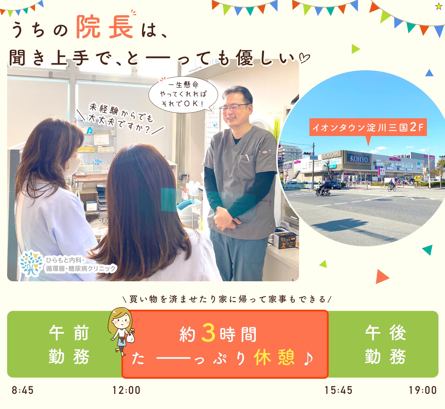 勤務地 大阪市淀川区三国本町2-13-2 イオンタウン淀川三国 2F