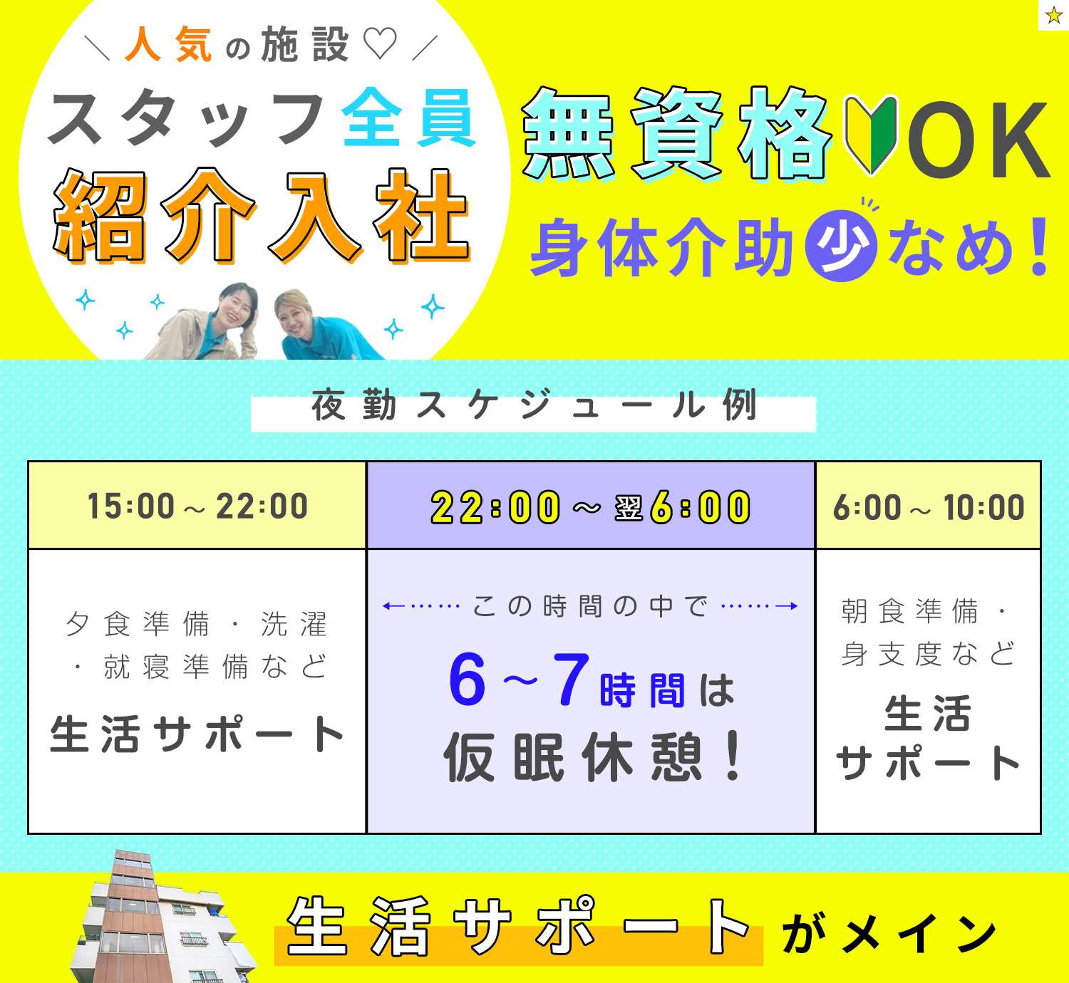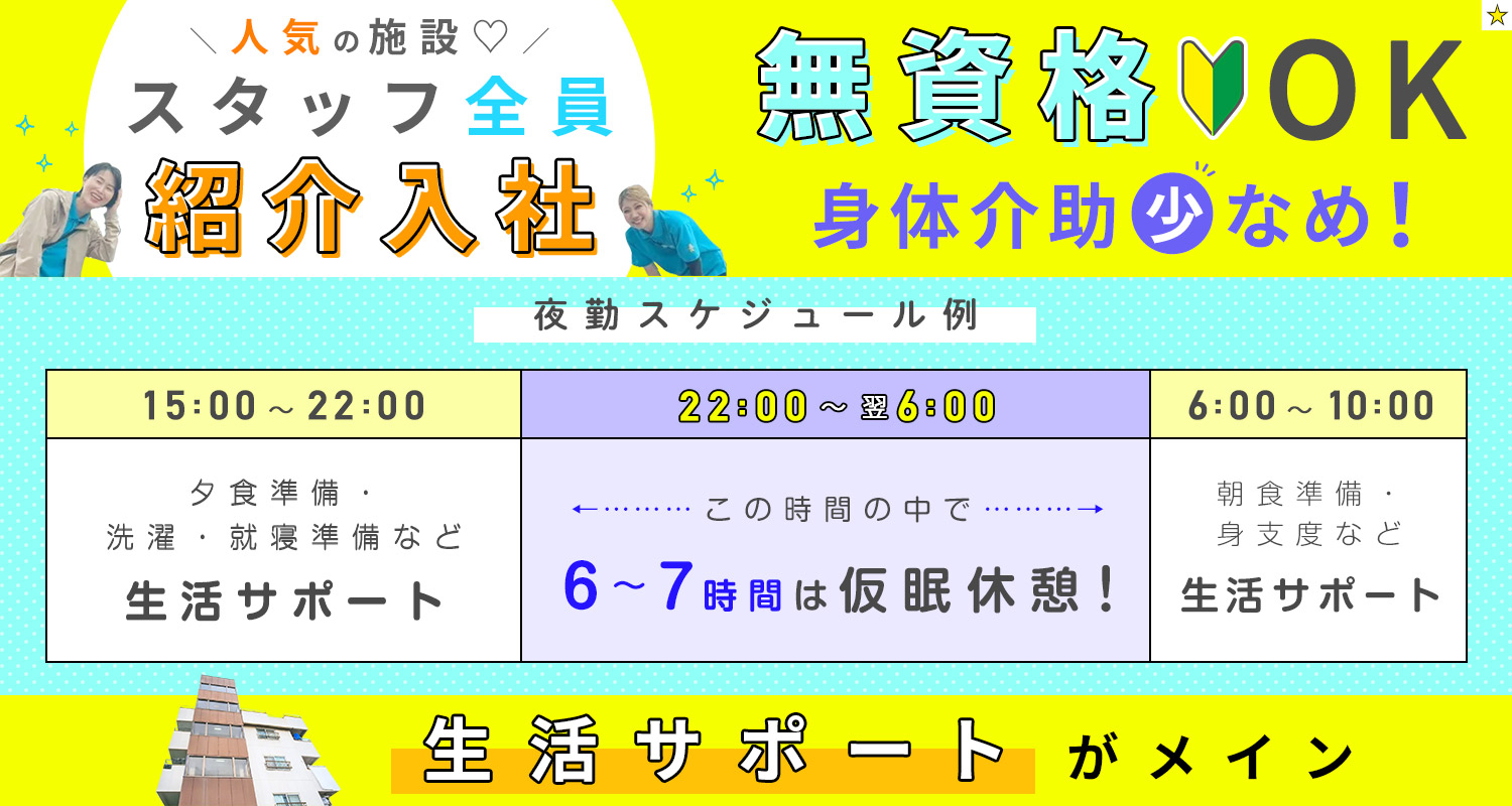 | 職 種 | 夜間の生活サポート(見守りメイン) |