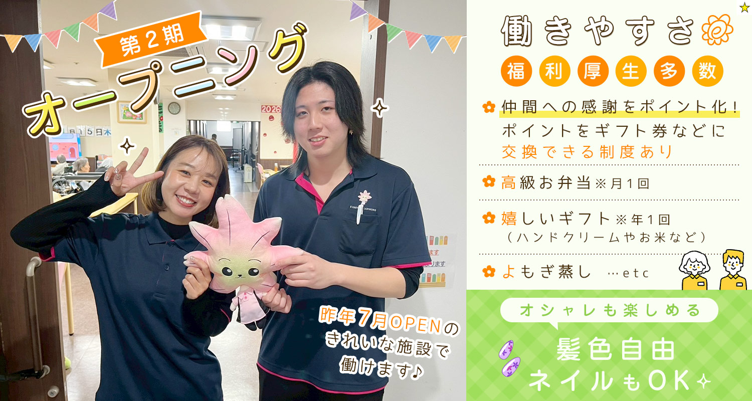 【昨年7月に新築OPEN!入居者様増加に伴い、スタッフ増員大募集】
