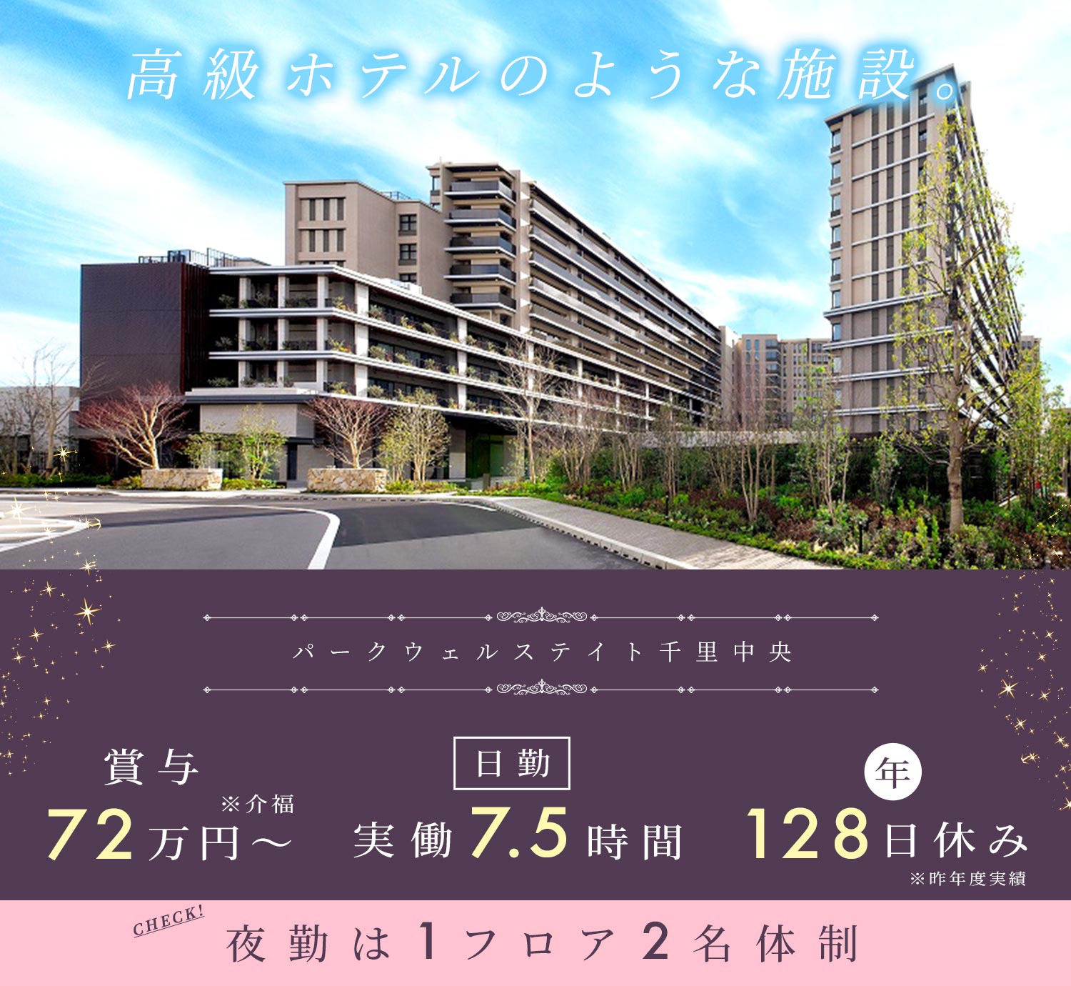 | 仕事内容 | 介護福祉士・介護職/540床の大型介護施設[社] 高級ホテルのような豪華で綺麗な有料老人ホームでの介護業務全般。 入居者様への生活支援(清掃・洗濯・買い物・料理等)や身体介助(施設内での食事・着替え・入浴・排泄介助等)やイベント・アクティビティの企画・実施をお願いします。 当施設ではインカム・見守りシステム・服薬管理システムを導入。 使用方法も入社時のOJTで丁寧に説明するので、安心して働いていただける環境です。 ※現在は寝たきりの入居者様はおられず、生活支援がメイン ◆夜勤は1フロア2名体制 全3フロアあり、介護職計6名+看護師2名の手厚い体制です! 仮眠が取れるソファーや、ベッドのある仮眠室もあるので交代制でしっかり休憩も取れます。スタッフダイニングもあるので、電子レンジや給水(お茶・お水)も自由に利用可能。 ◆全540床の大型施設 パークウェルステイト千里中央は介護居室78室が特定施設に類型変更となり、これまで以上に入居者様と関わりを持ってケアすることができるようになりました。 将来的には、アクティビティや個別生活機能訓練なども担当し、ケアの幅を広げることができます。 スタッフも入居者様も優しく穏やかな方が多く、看護師との連携も良好なので安心して働けますよ。 |