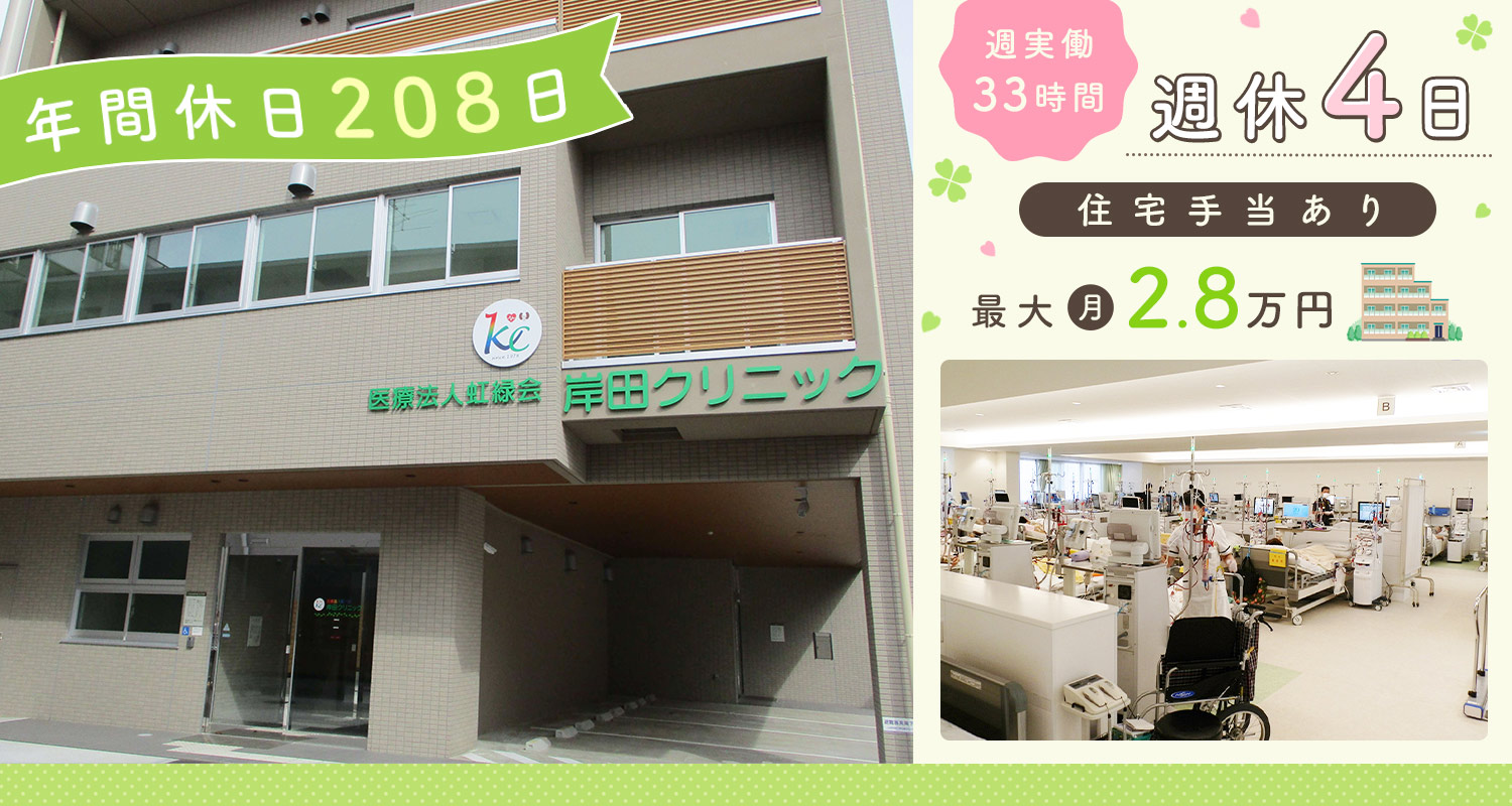 | 仕事内容 | クリニックの看護師/完全週休4日[社] 人工透析専門クリニックでの看護業務全般。 透析の準備・穿刺~止血、透析中の患者様の看護、健康管理・生活指導など。 ≪透析未経験OK!マンツーマン研修制度あり≫ 入職後、まずは先輩の補助業務をしながら、透析に関する知識をしっかり身につけるところからスタート。 そして研修の内容をチェックして問題がなければ、晴れて透析看護師の一員に! その後も、教育担当の先輩(プリセプター)が新人さんに寄り添い、3ヶ月程度じっくり時間をかけ、技術向上をサポートします。 スタッフの約8割が透析未経験スタートです。 □□□ 経験が長い、ベテランの先輩も多数活躍していますが、皆さん気さくで面倒見の良い方ばかり。きっとすぐに馴染んでいただけますよ! 今いるスタッフもベテランの先輩に教えてもらい成長しました! |