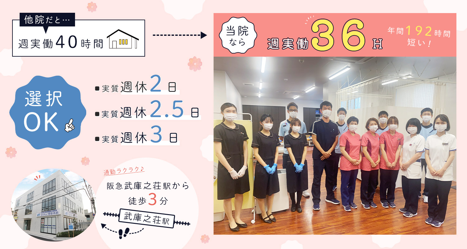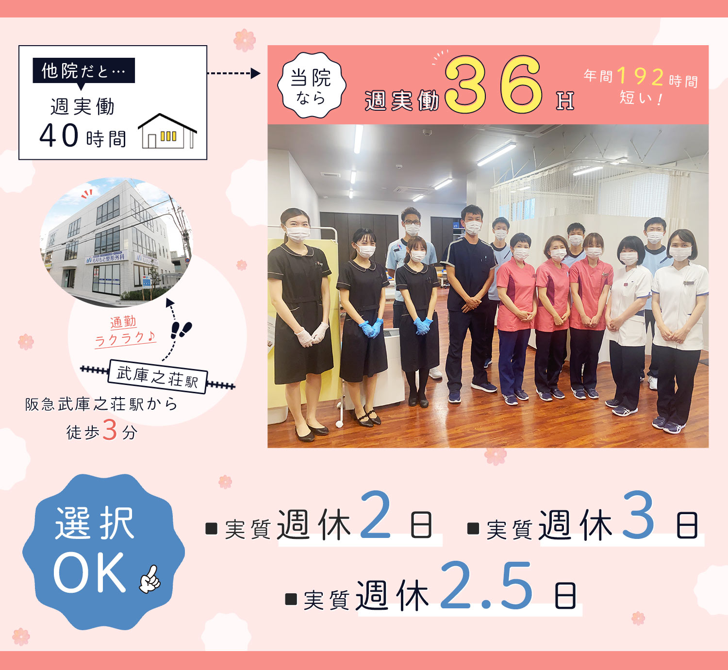正社員でも、週29時間~週36時間と他院よりも短め◎