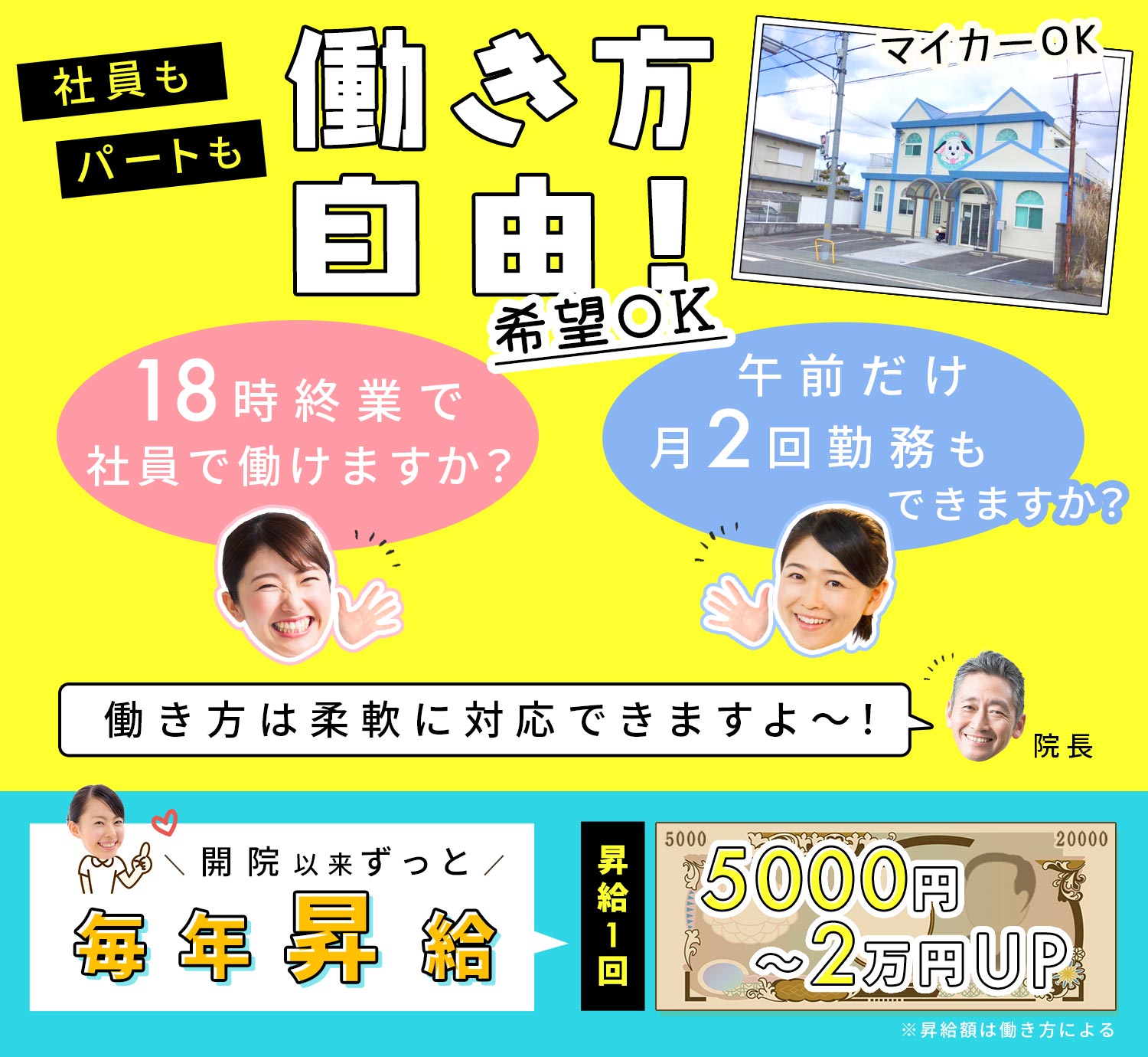 希望する曜日や時間帯、日数は自由に希望相談できるのが当院の魅力!