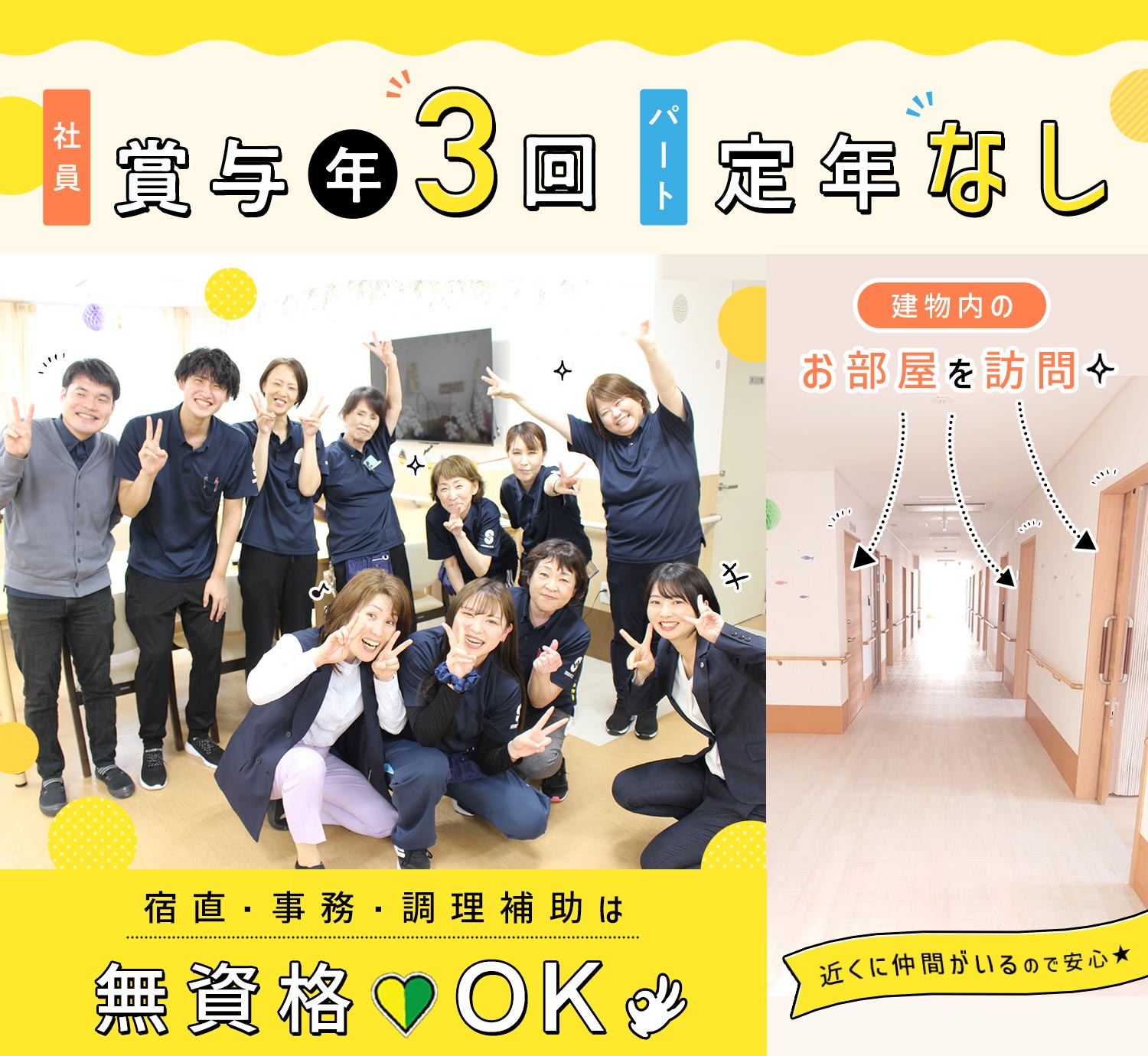 施設の雰囲気や一緒に働く仲間を見てからの応募でも大丈夫です。